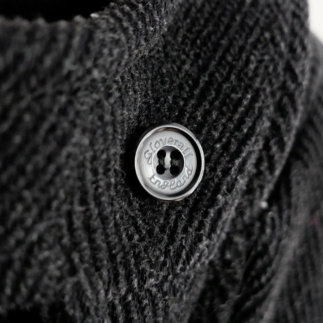 カラーは汎用性の高いチャコールグレーで、ボタンに筆記体でブランド名が印字された珍しい仕様の個体になります。