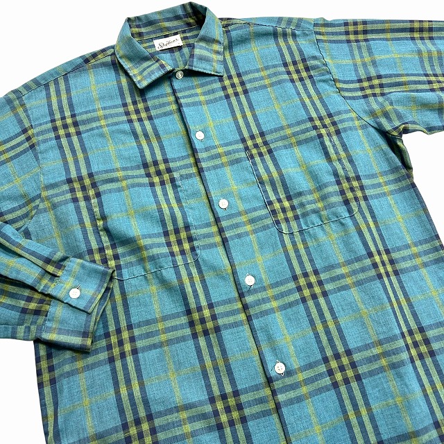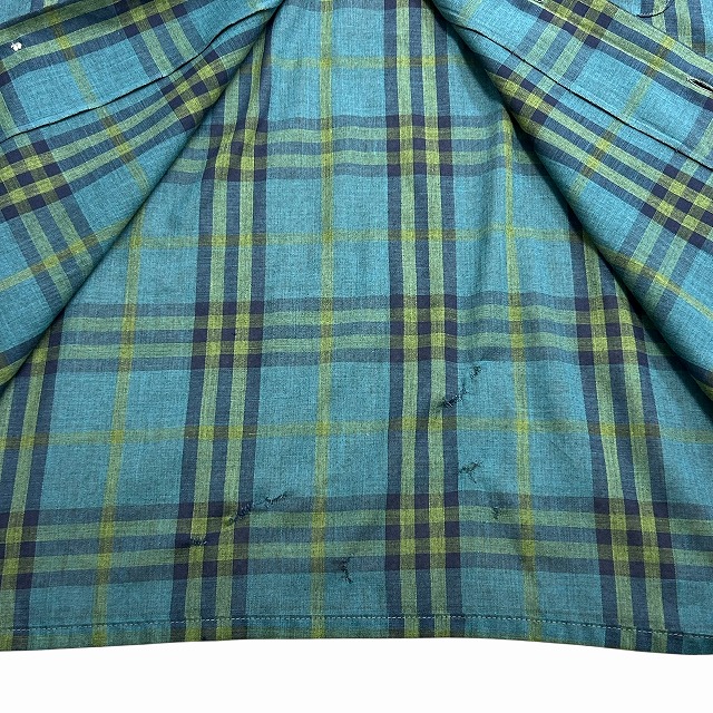 「グリーン系チェック、サイズM」