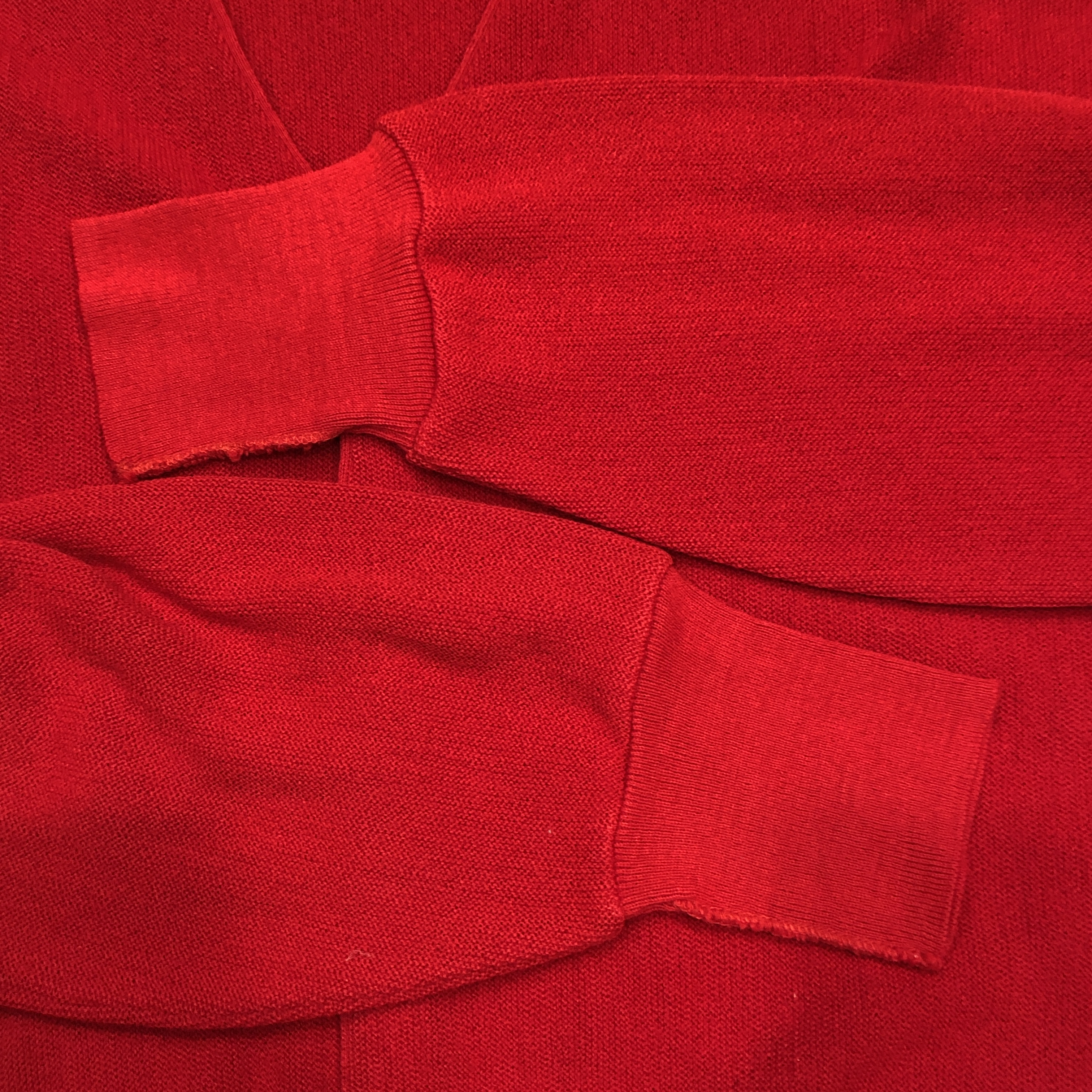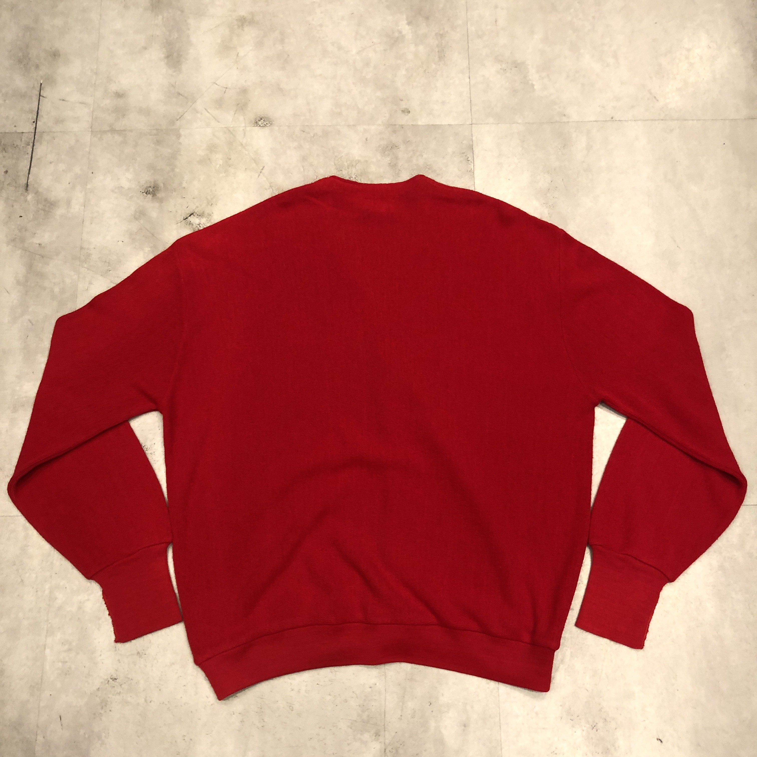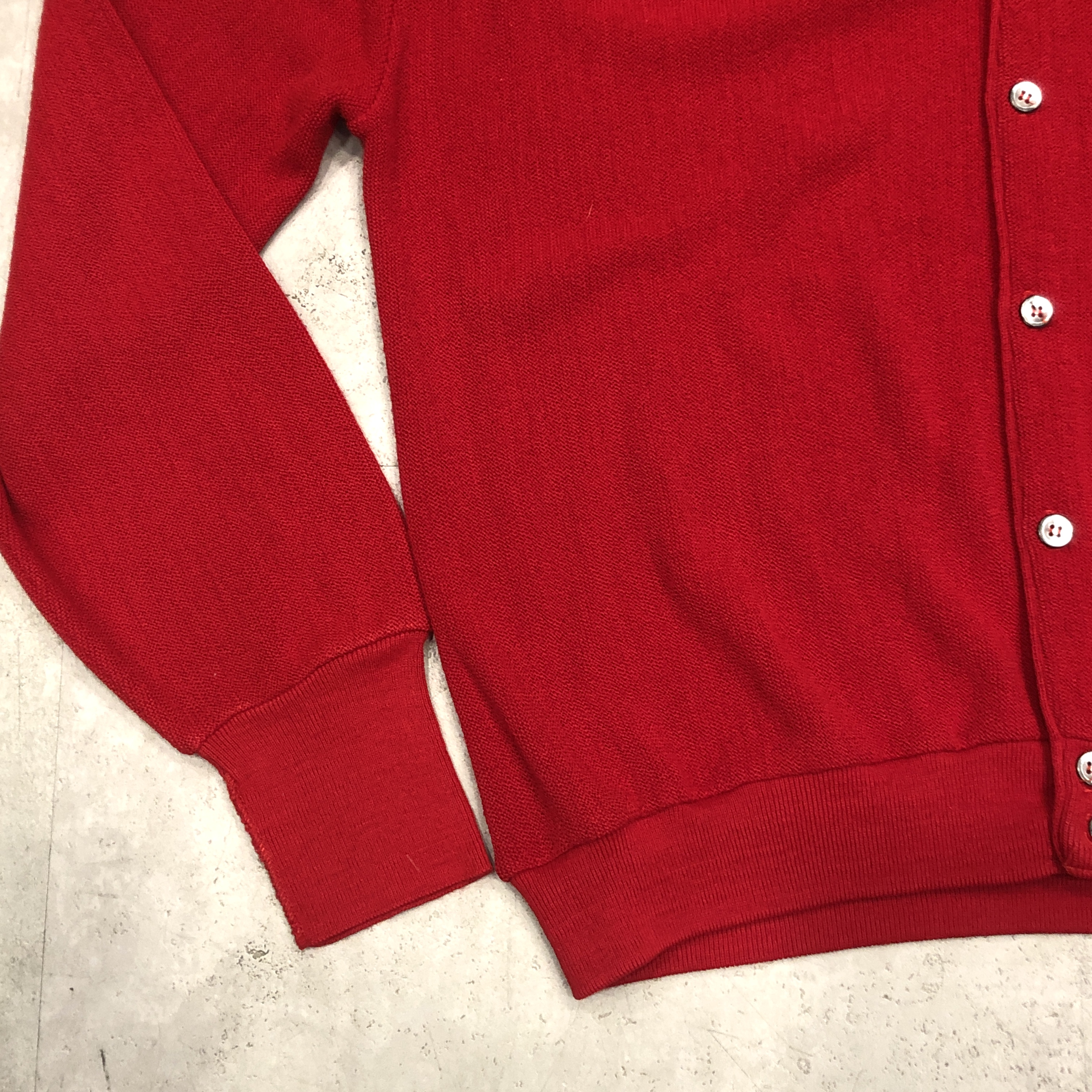 こちらは Made in U.S.A. のオリジナル仕様。100% Orlon Acrylic による軽やかな着心地と、ニットならではの柔らかな風合いが魅力です。汗を気にせず羽織れる実用性から、学生はもちろんジャズマンやアーティストたちにも愛用され、当時のアメリカ文化を象徴する一枚となりました。