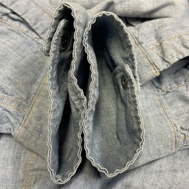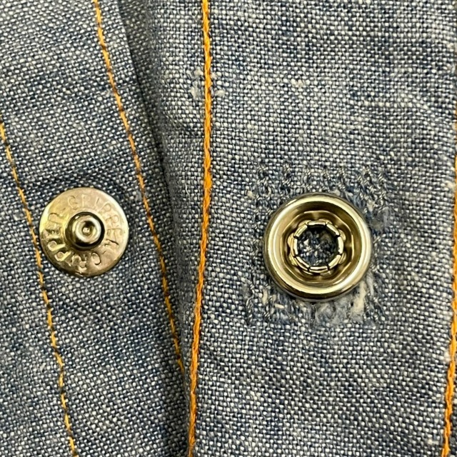 - 薄汚れや小傷があり、フロント第6スナップボタンにリペアがございます。