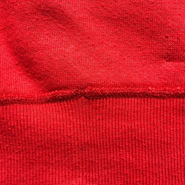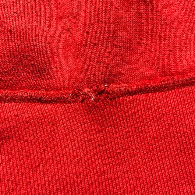 - 画像の様に、裾縫い合わせ部分にリステッチ、裾リブ内側にリペアがございます。