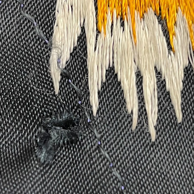 その他に、薄汚れ、スレ、刺繍部分に引っ掛け等着用感がございますが、問題無くご着用頂ける状態です。