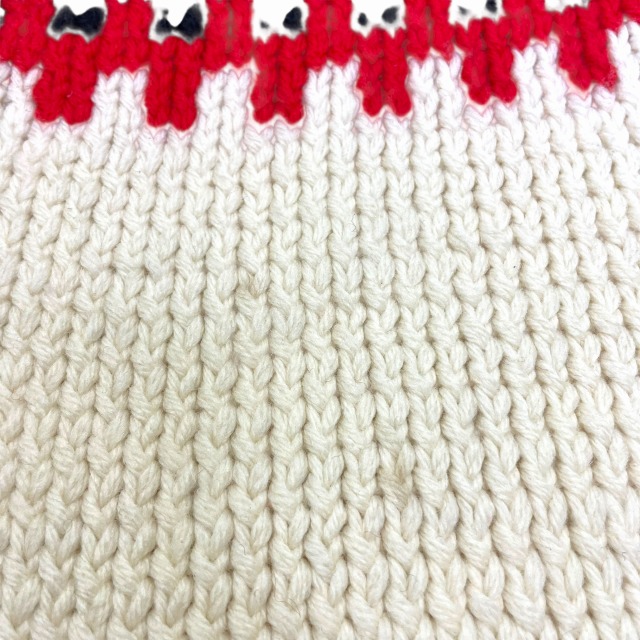 - 画像のように、色ムラ、わずかな汚れ、多少の色移り、毛玉がございますが、