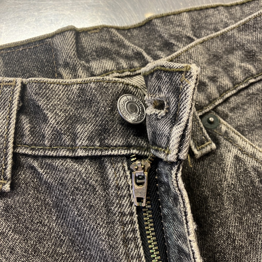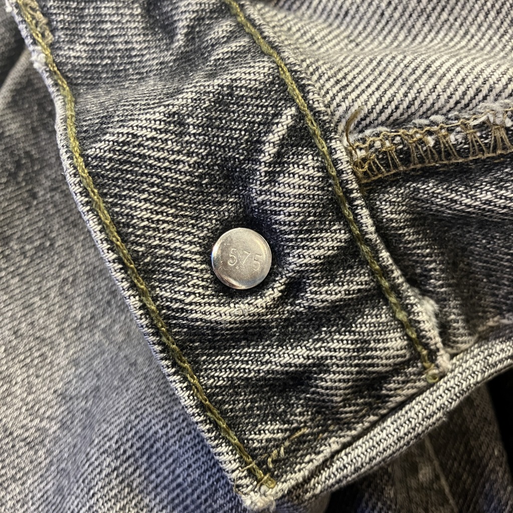 年代相応の着用感、膝部分にリペア、各所スレ等ございますが、古着慣れされた方でしたらまだまだ問題無くご着用頂ける状態です。