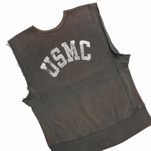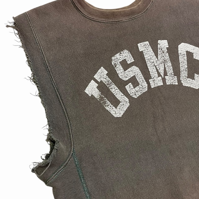 「単色タグ、USMC、両面プリント、袖カット、S」