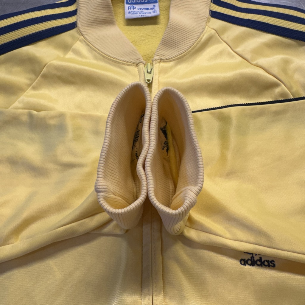 - 背面に小穴、裾リブに薄汚れ、全体的に着用感ございますが、まだまだ問題なく着用していただける状態になります。