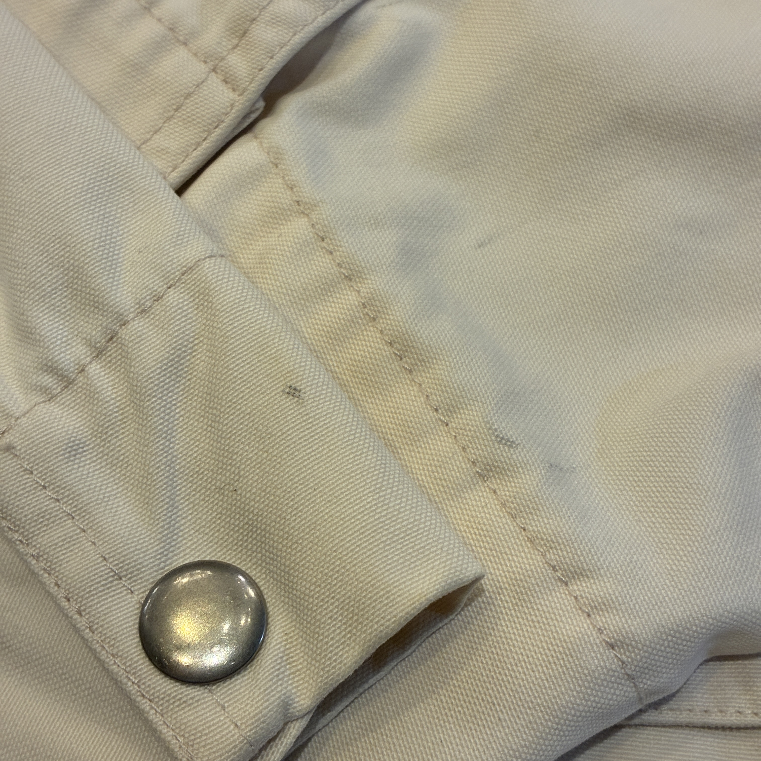 - 多少の薄汚れや袖口に擦れ等の着用感がございますが、目立つ汚れやダメージは無く問題無く着用していただける状態です。