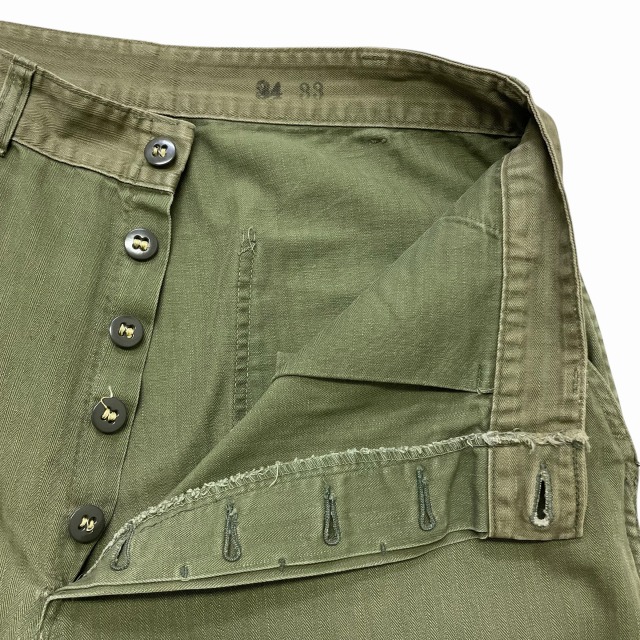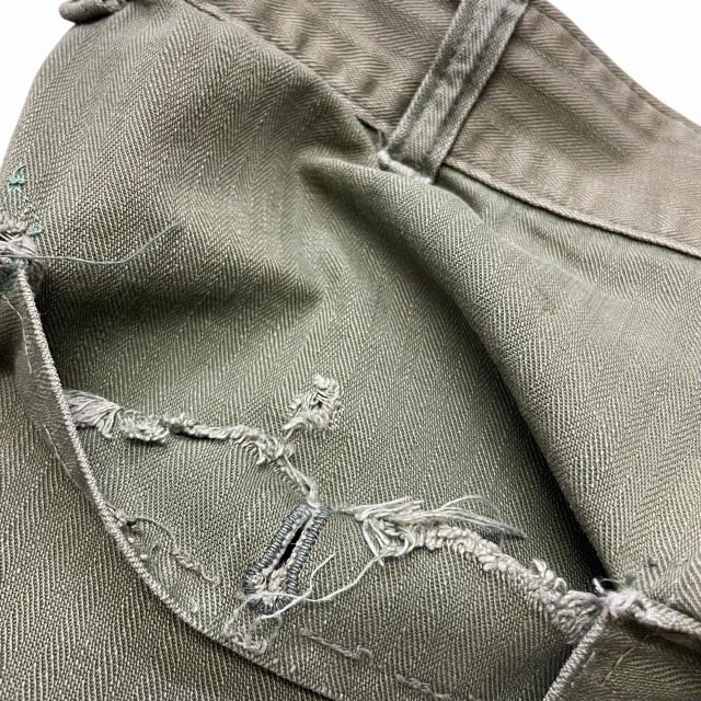 左ヒップポケットにリステッチがあり、ポケットのボタンが欠損しております。