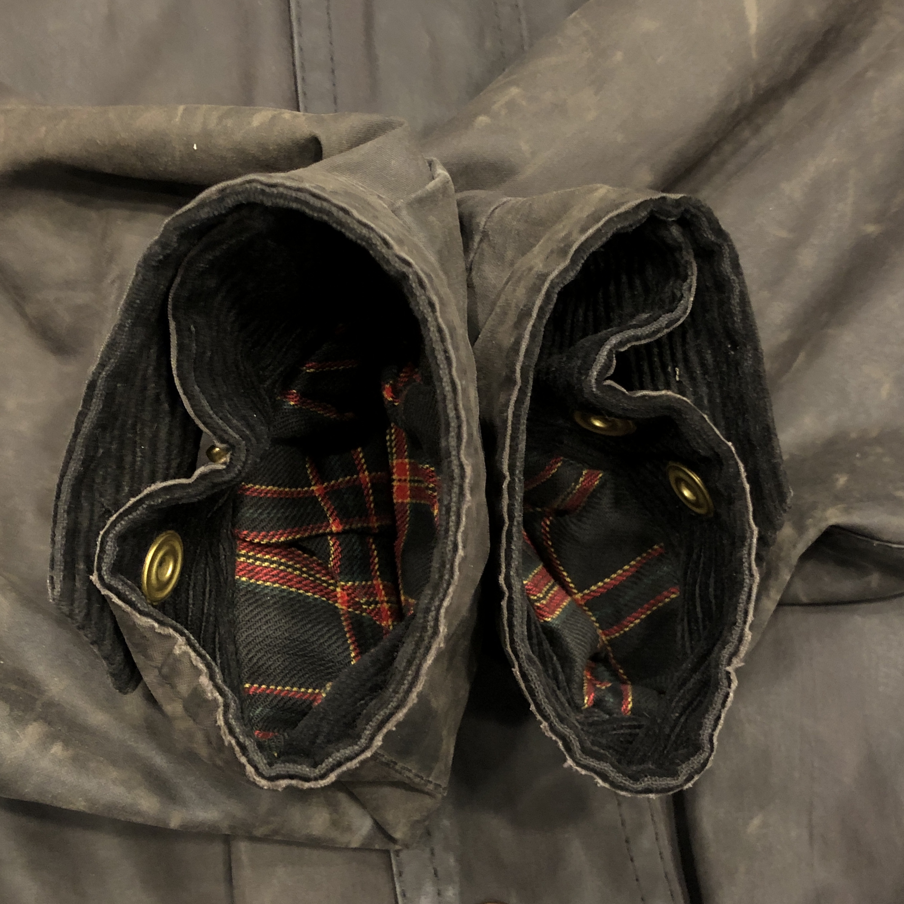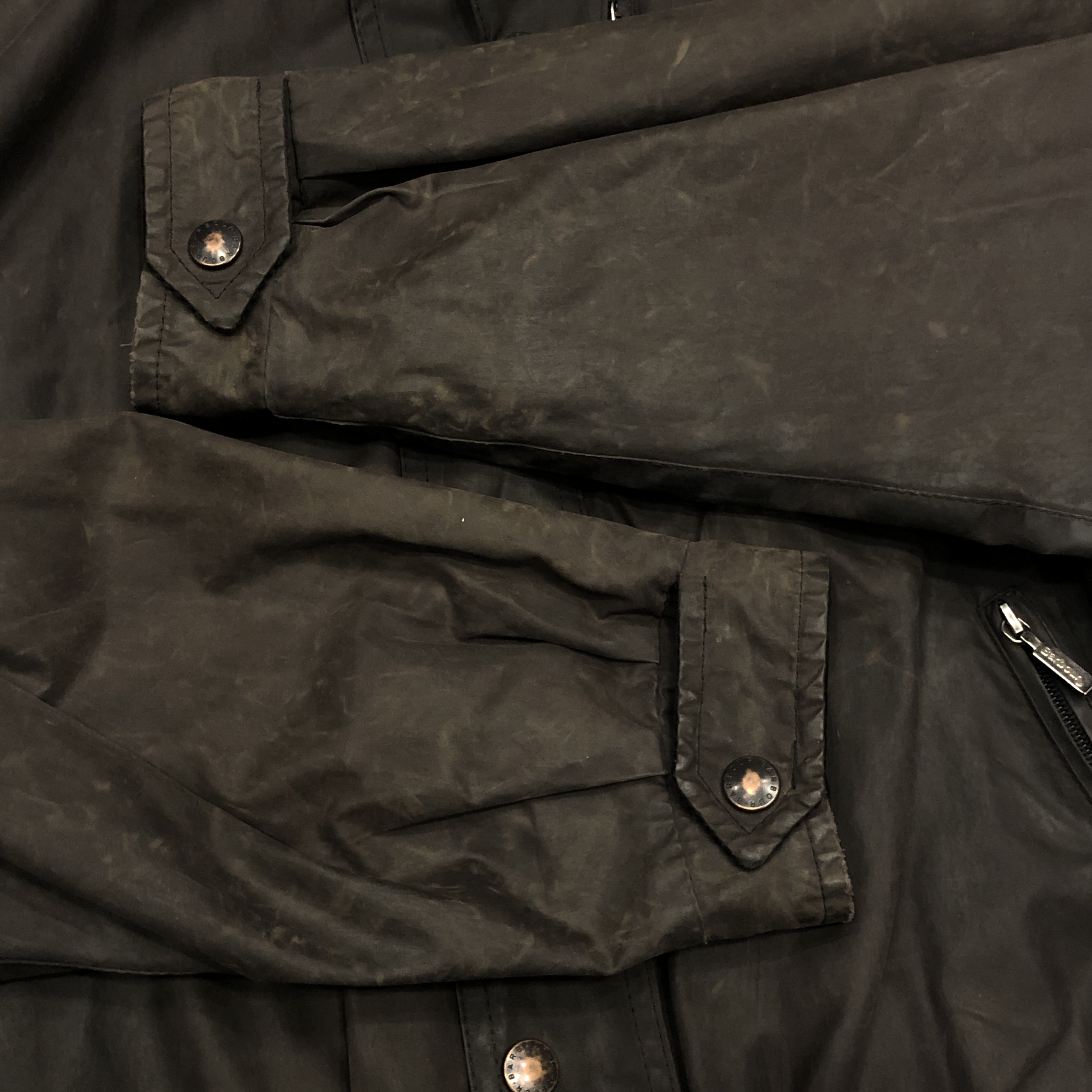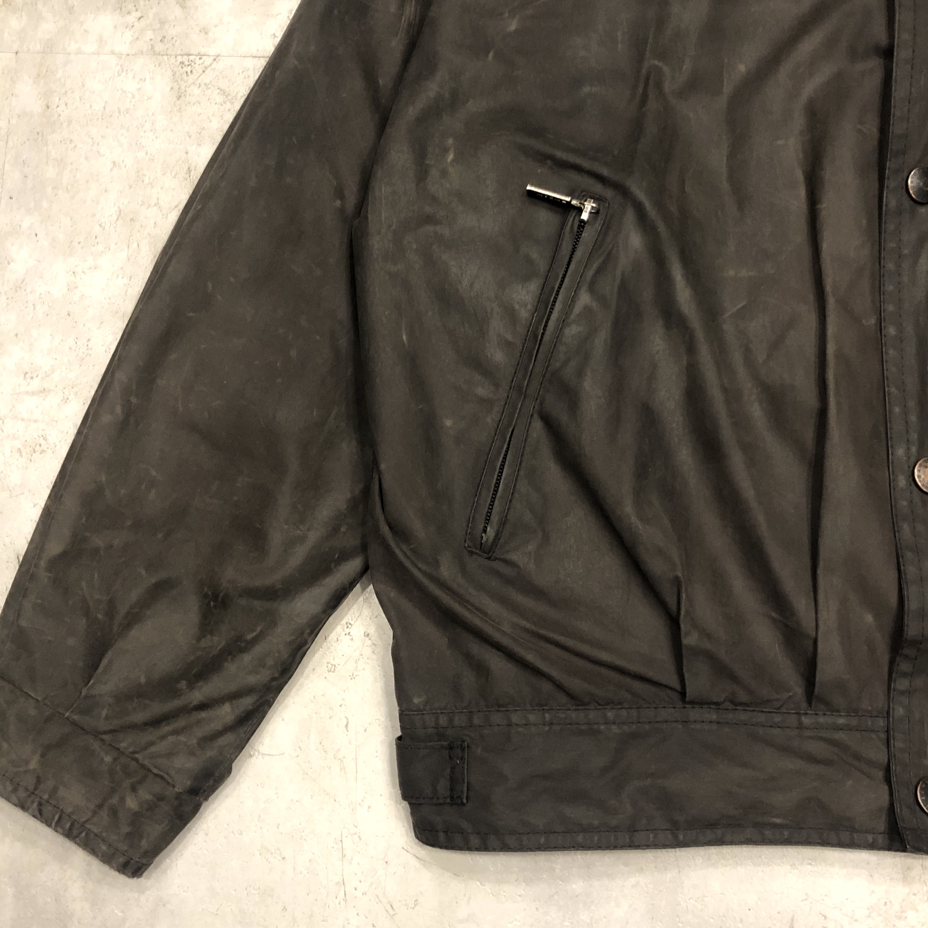 - 年代相応の着用感、オイルドジャケット特有のアタリ、スレ等がございますが、古着慣れされている方でしたら問題なくお使いいただけます。