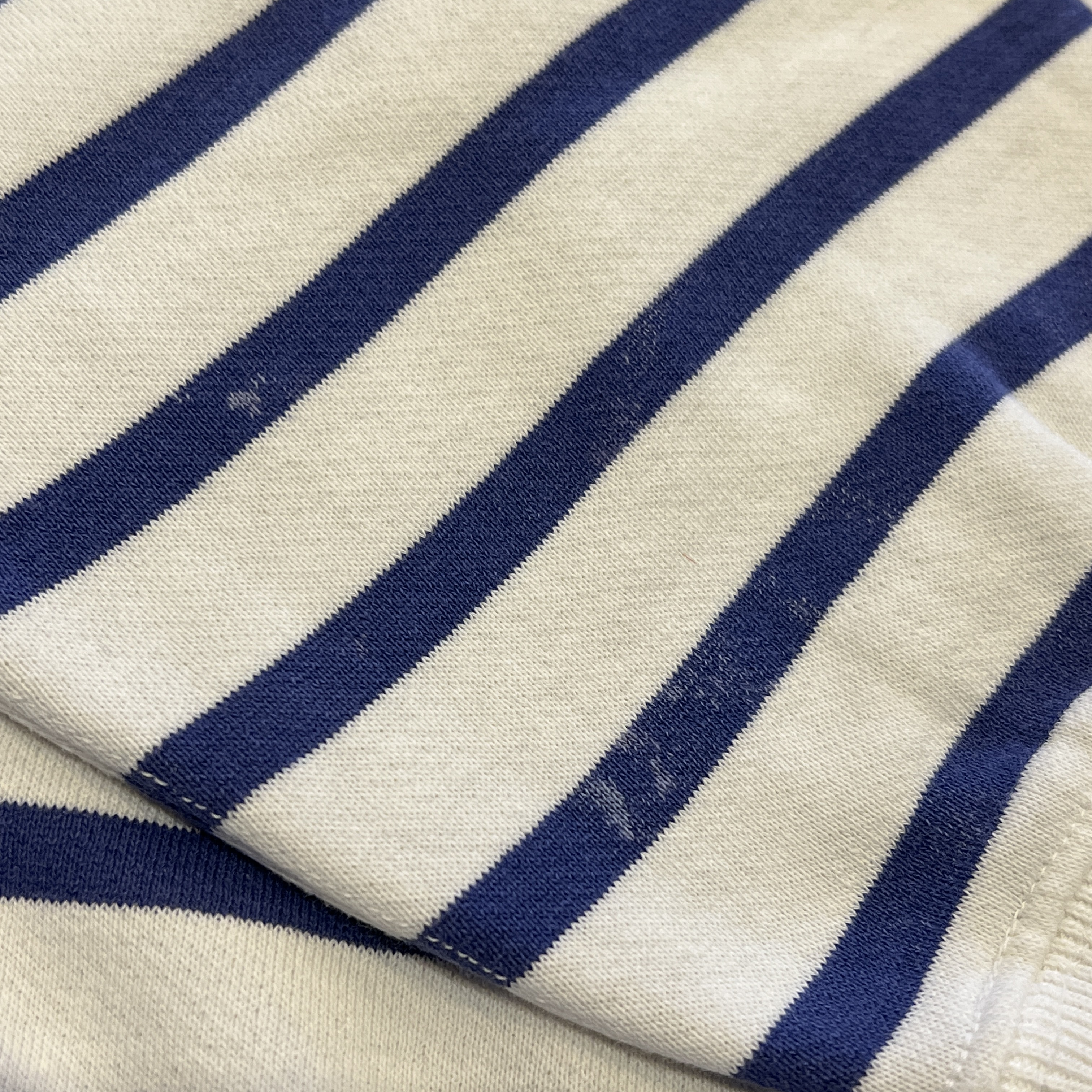 - 裾付近に細かなシミや袖にブリーチ跡の様なものが見られますが、目立つ汚れやダメージは無くまだまだ問題無く着用していただける状態です。