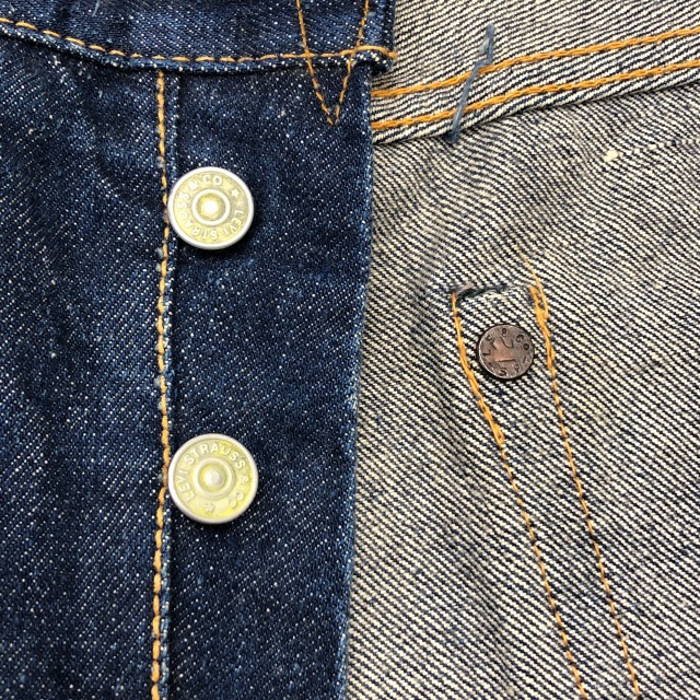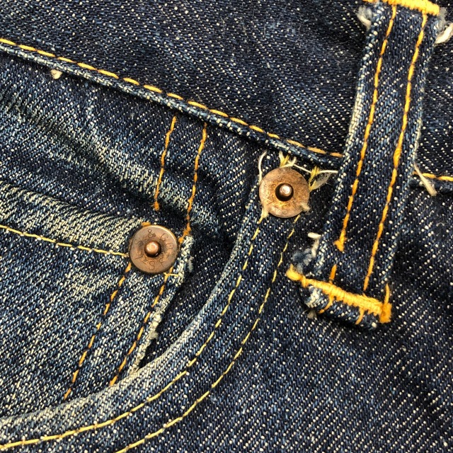 ポケット裏リベット銅色、コインポケット耳なし、フロントボタン通常R、
