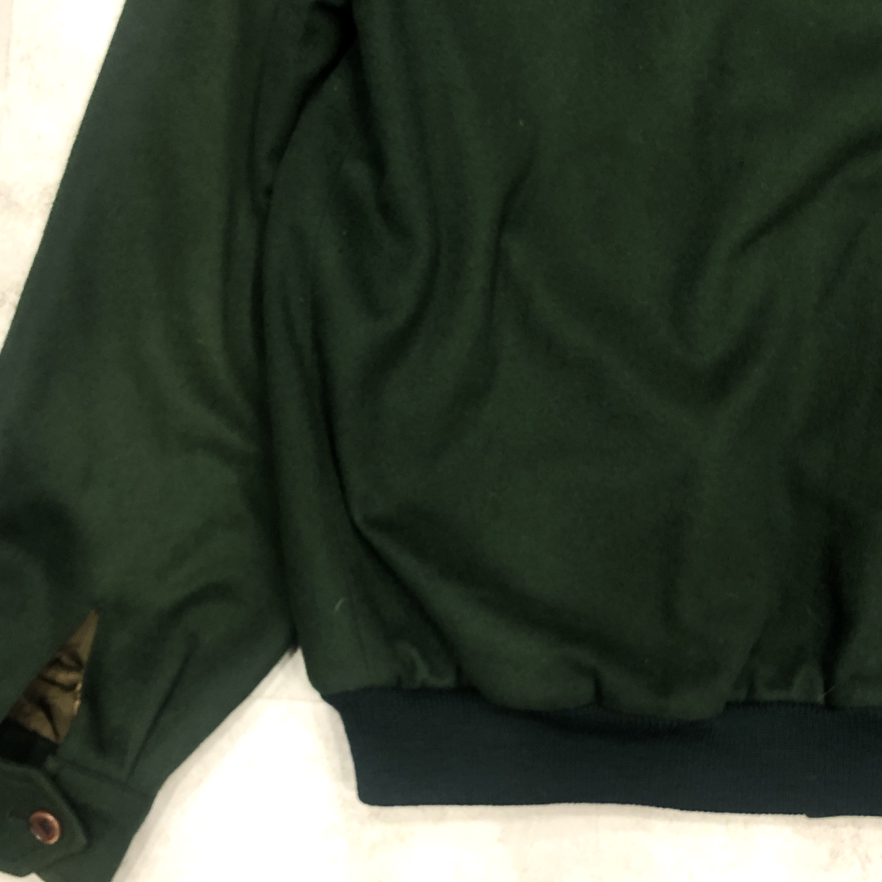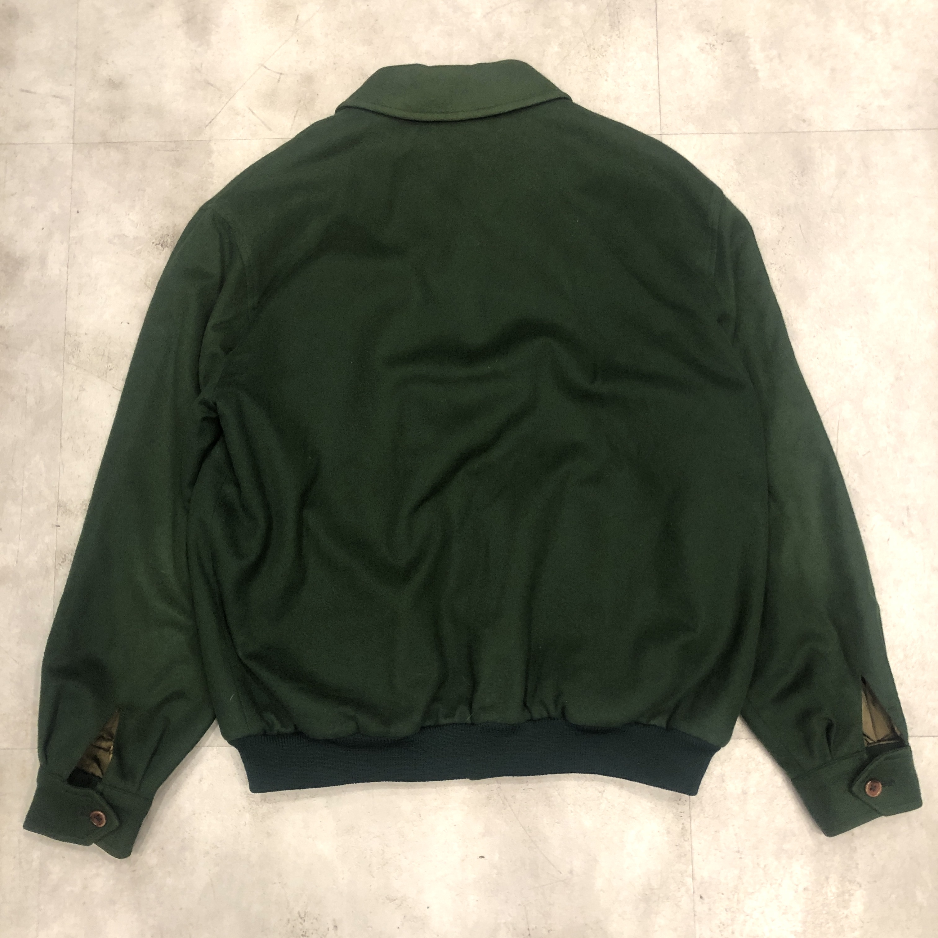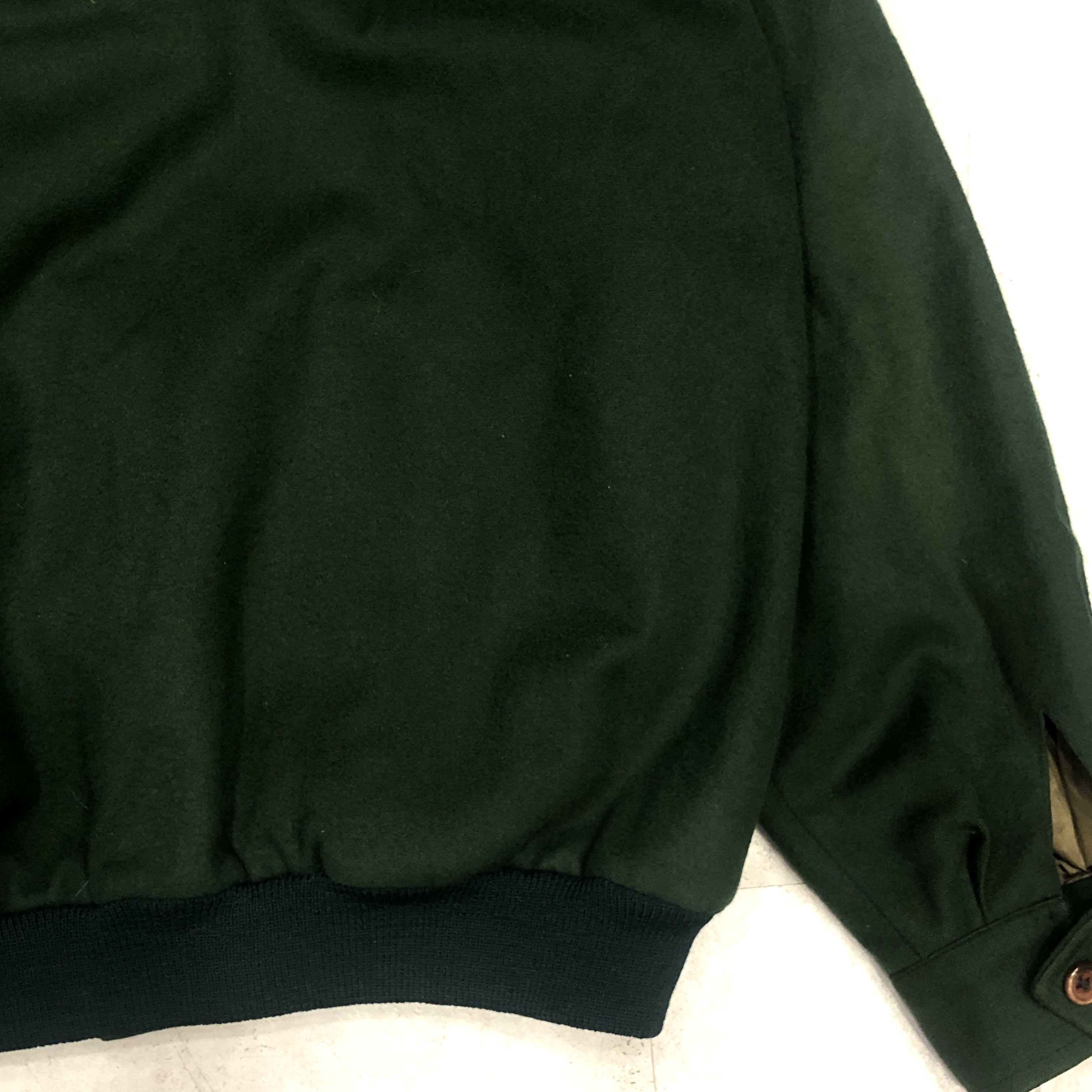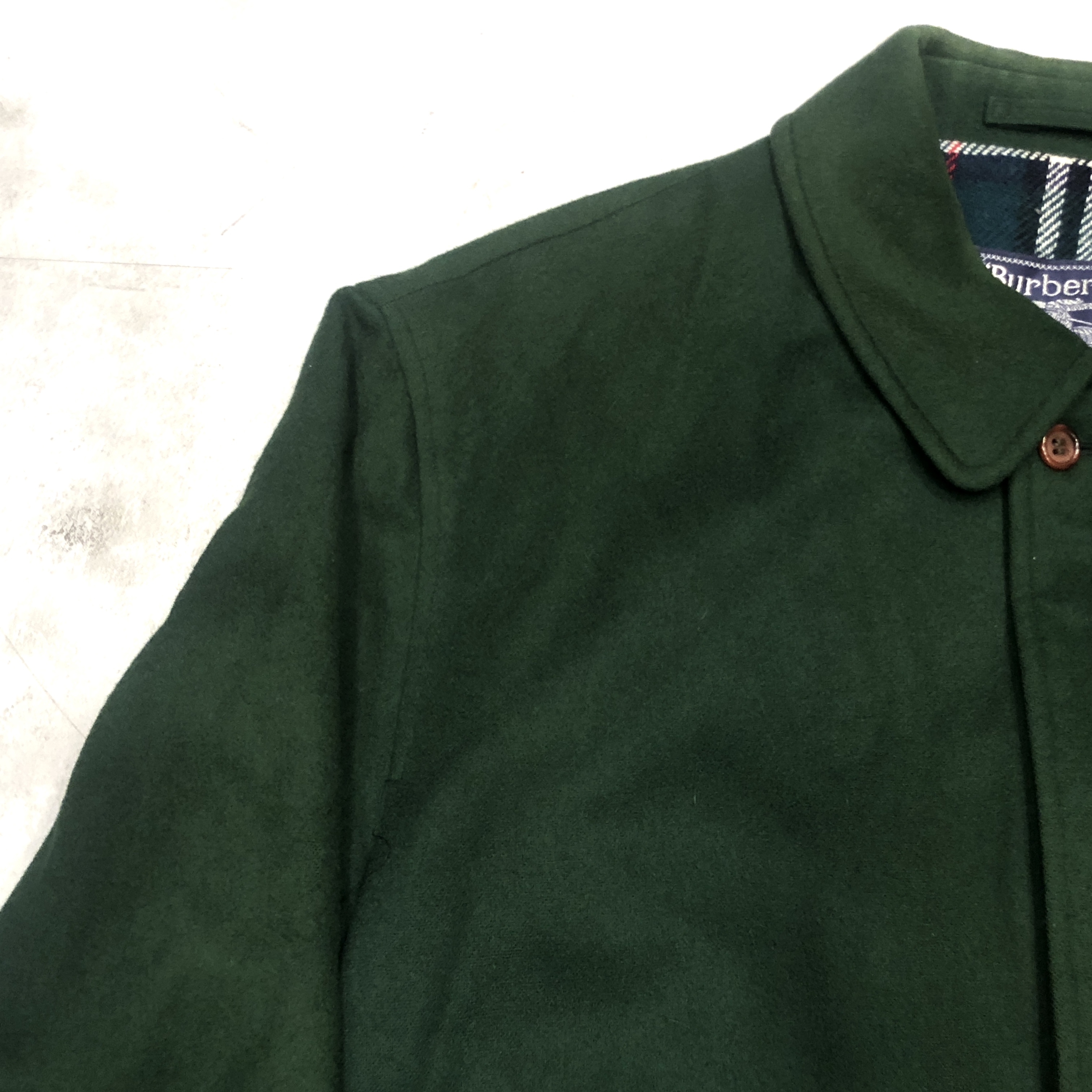 Burberrysから90年代製の名品、ウールハリントンジャケットをご紹介。密に織り込まれた深緑のウール地は、着用するほどに身体に馴染み、冷気を遮る頼もしさを備えています。肩やアームには立体感のあるゆとりを持たせつつ、裾と袖のリブ使いが程よく引き締め、都会的な佇まいも演出。