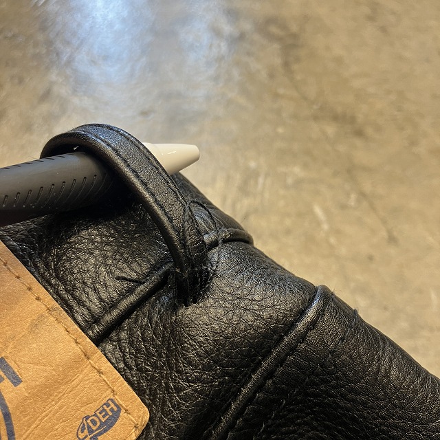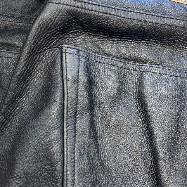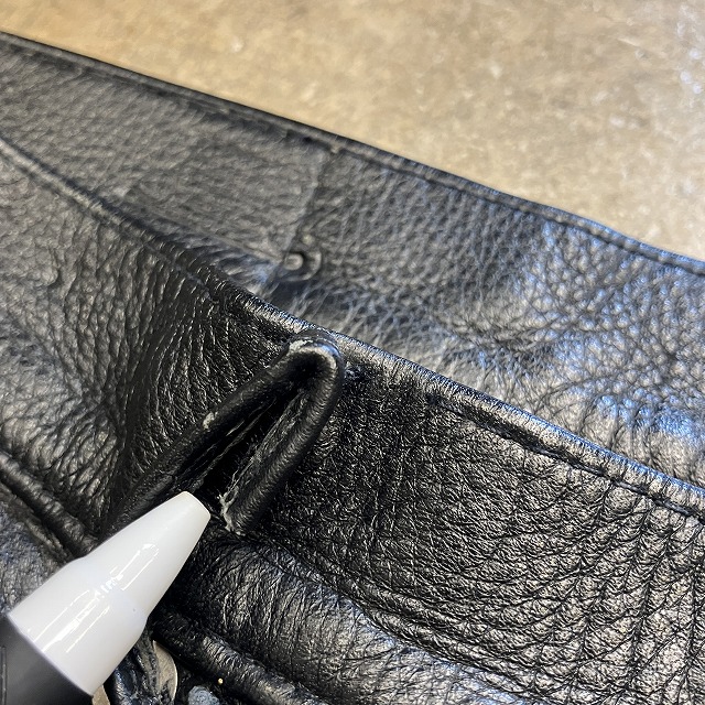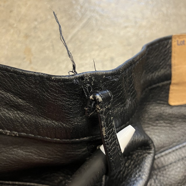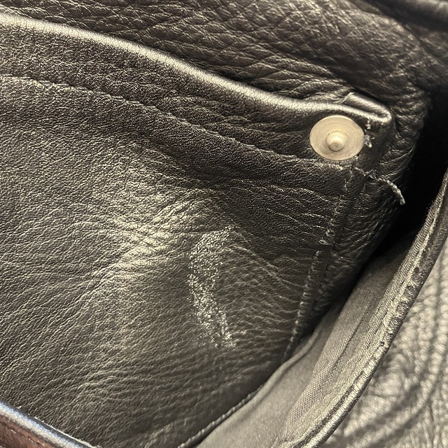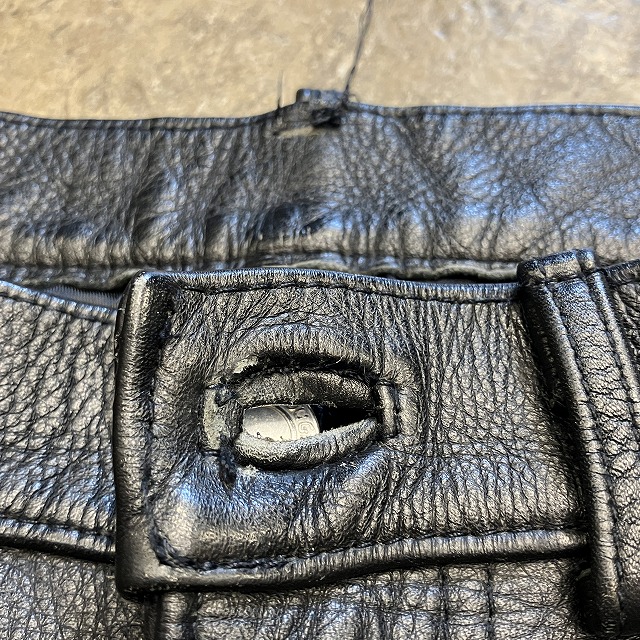 - 数か所にベルトループのステッチのほつれがみられます。また、内側に画像の様なステッチ抜けがみられます。その他、レザー特有のスレ、小傷がみられ、ユーズド慣れされた方におすすめの商品です。