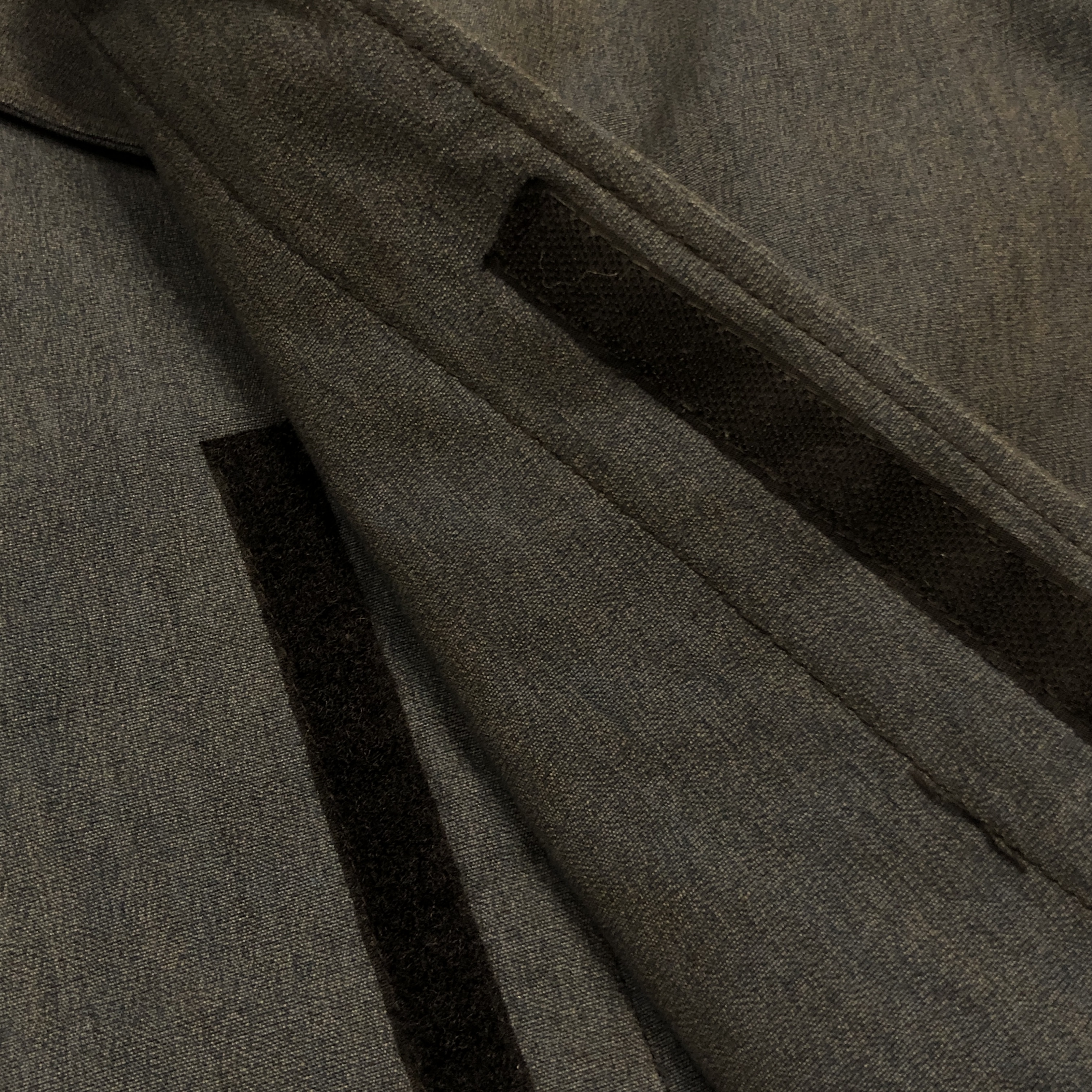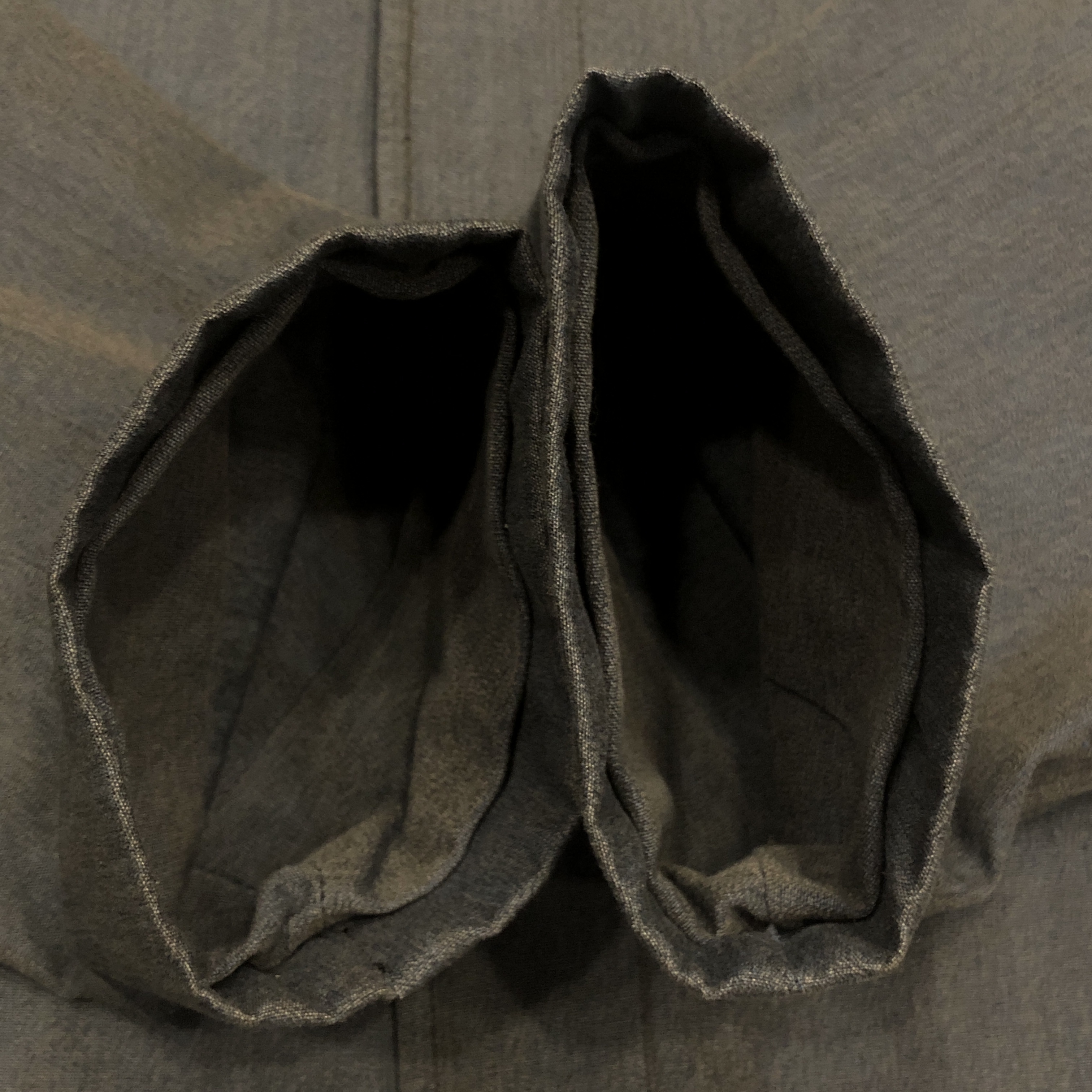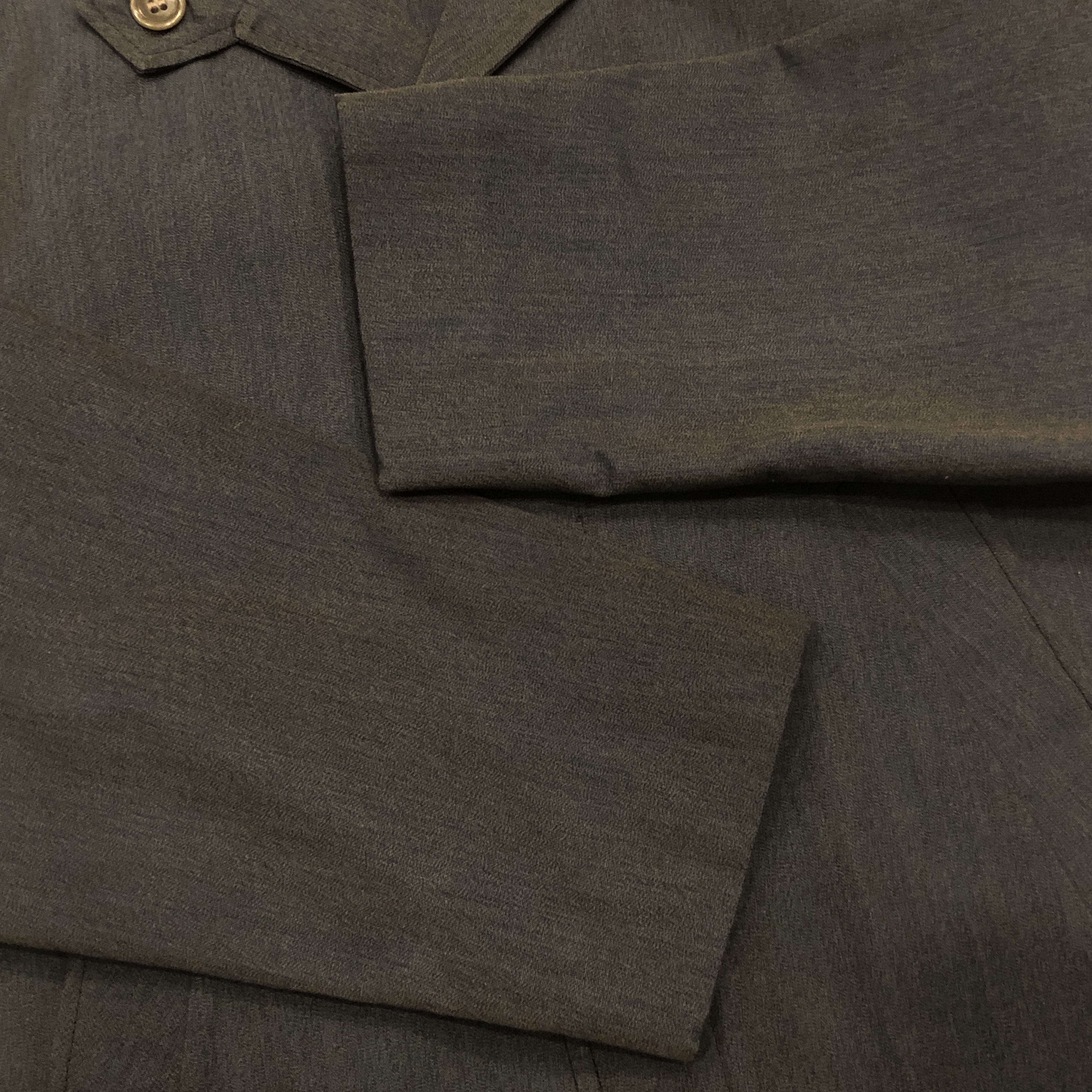 素材にはウール混と思われる中肉厚の生地を使用し、着用時には驚くほど軽やかな落ち感と、ほのかに見える織りの陰影が上品な印象を残します。