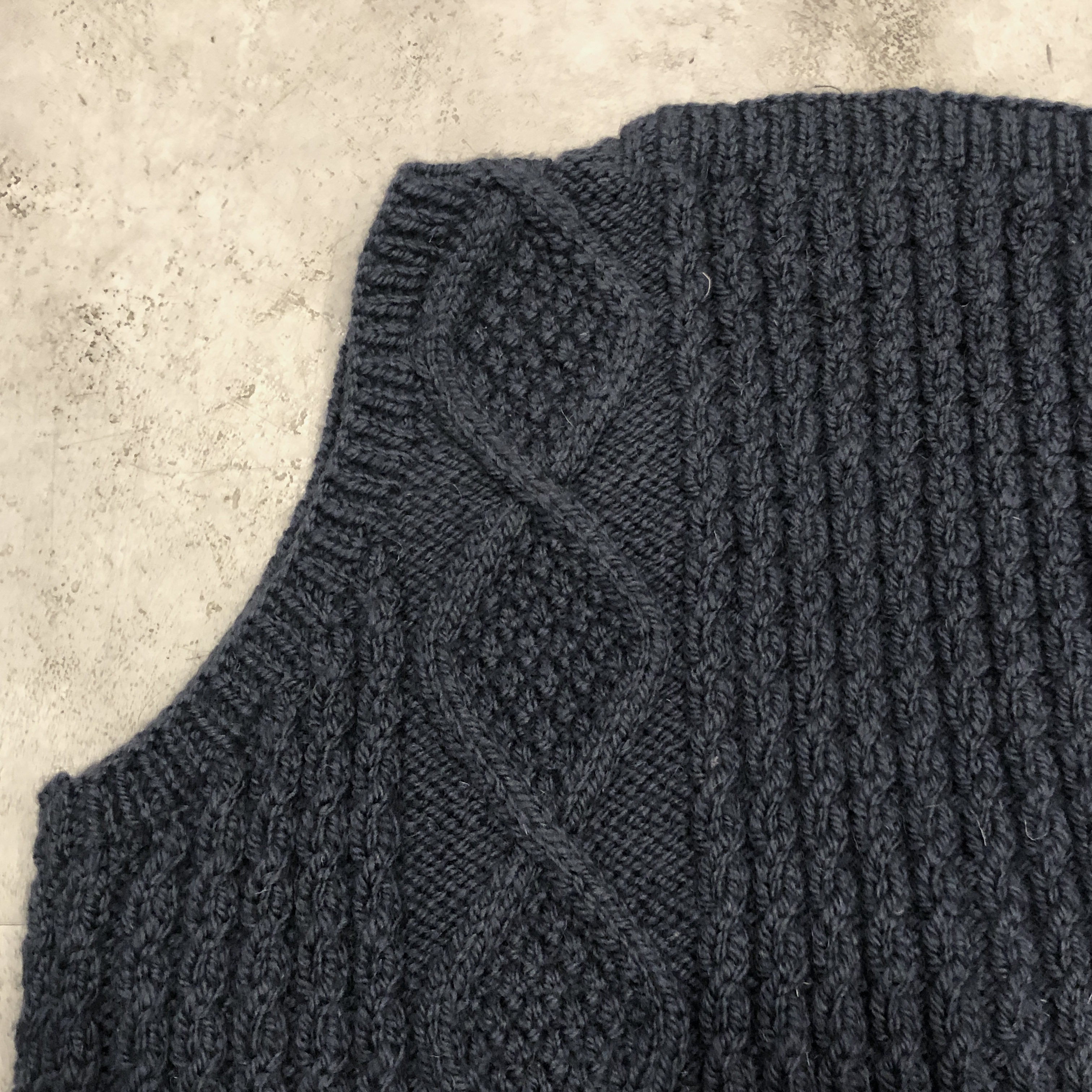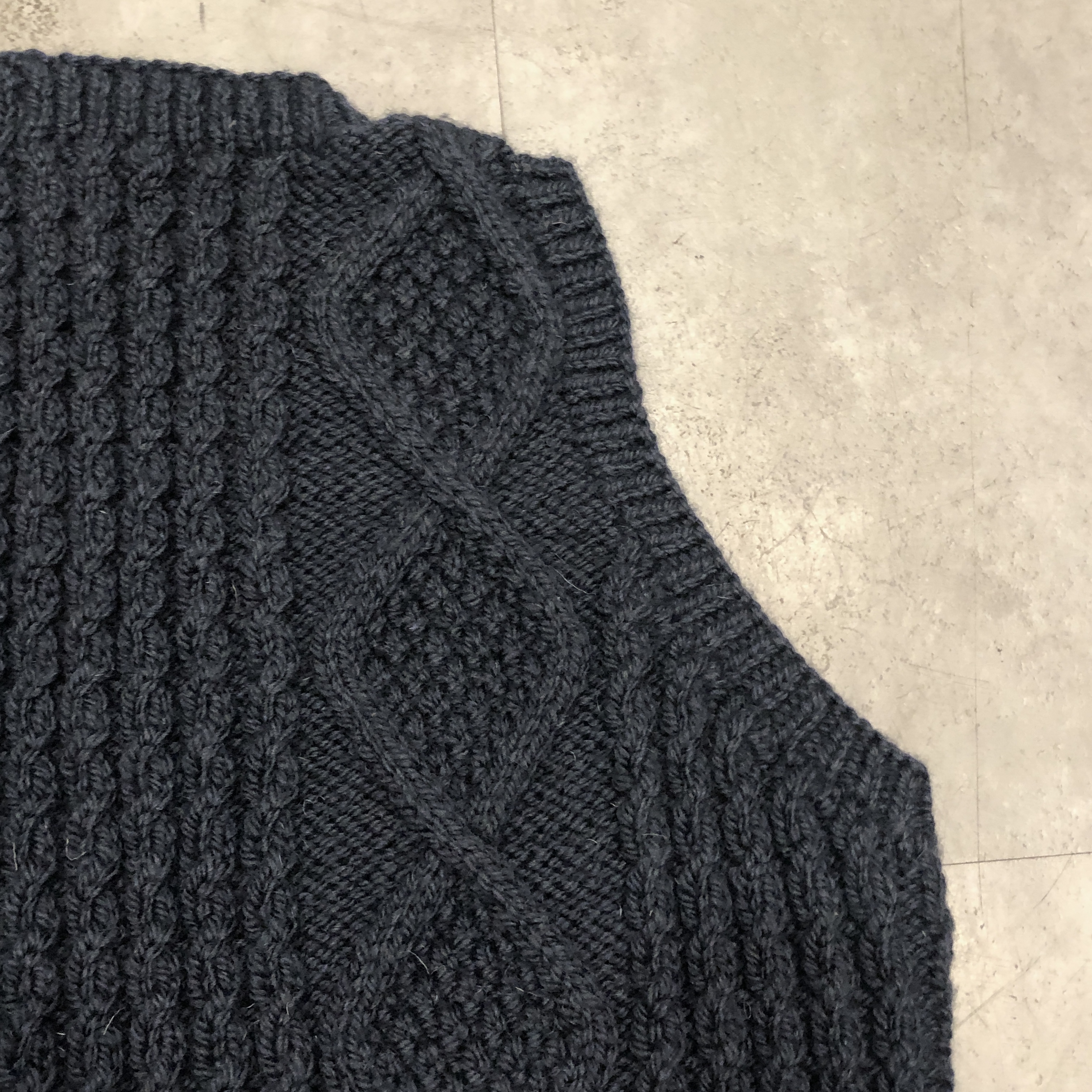 - スコットランド西岸、クライド湾沿いの小さな港町で、熟練のニッターによって一針一針編み上げられる〈INVERALLAN〉。こちらは「9H」ニットベスト、ウール仕様です。