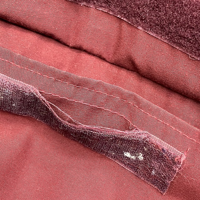また、フロントポケットのマジックテープのステッチ抜けが見られます。