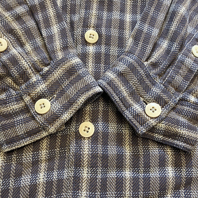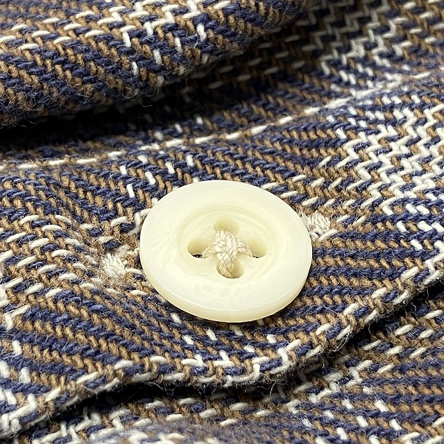 - 画像の様なボタンに若干のかけがみられます。また、左袖のボタンが1つ交換されています。その他、着用感はございますが、まだまだ問題なく着用していただけます。
