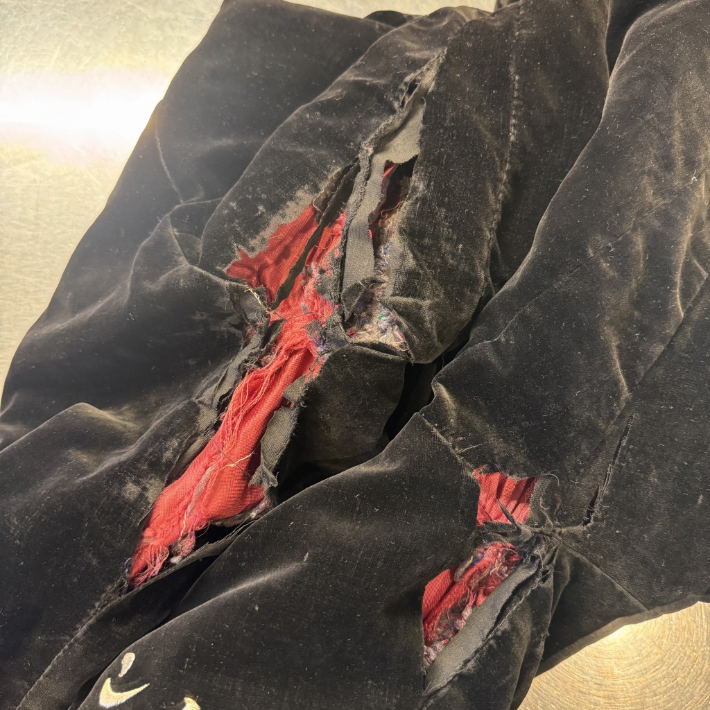 別珍面に劣化による粉吹きがございます。