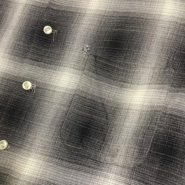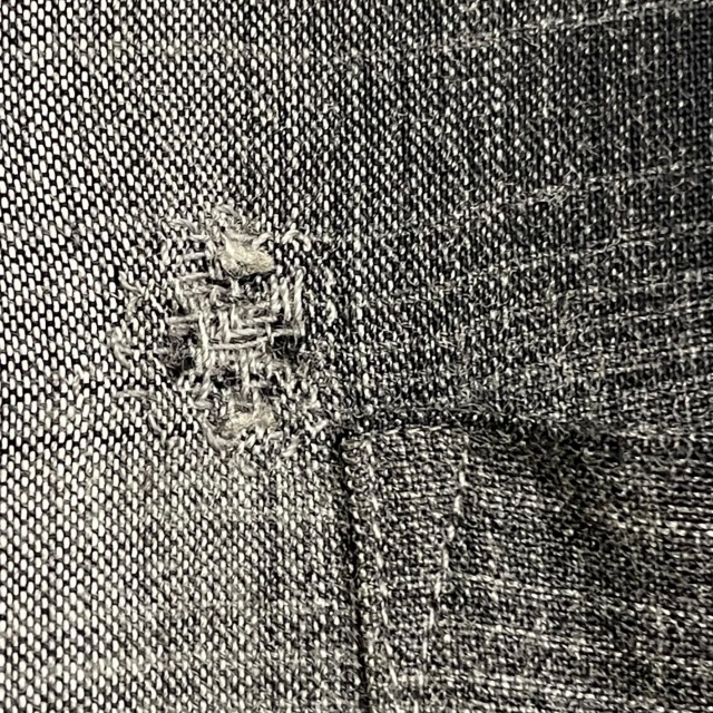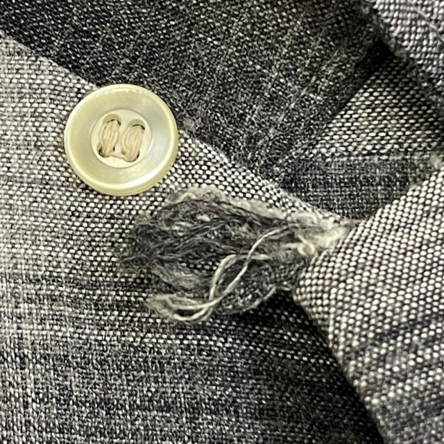 左胸ポケット上付近にリペアがあり、後裾にステッチ抜けがございます。