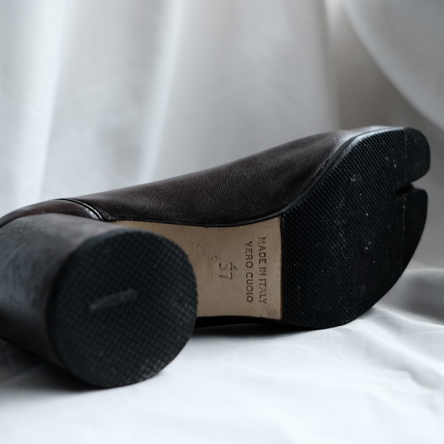 その名の通り日本の足袋からインスピレーションを受けデザインされております。ローファーやバレエ等様々なアイテムが登場しておりますが、こちらはそのオリジナルとなった足袋ブーツの初期モデル。恐らく90年代にレディースラインのみだった頃の個体かと思われます。もうほとんど目にすることのなくなった大変貴重な逸品。特徴として底にカレンダー刻印がなく、革質も非常に柔らかく、現行品とは全くの別物。