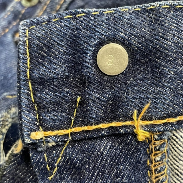 「ウエストシングル、Vステッチ、GRIPPER ZIPPER、耳付き、実寸W44.5 L29」