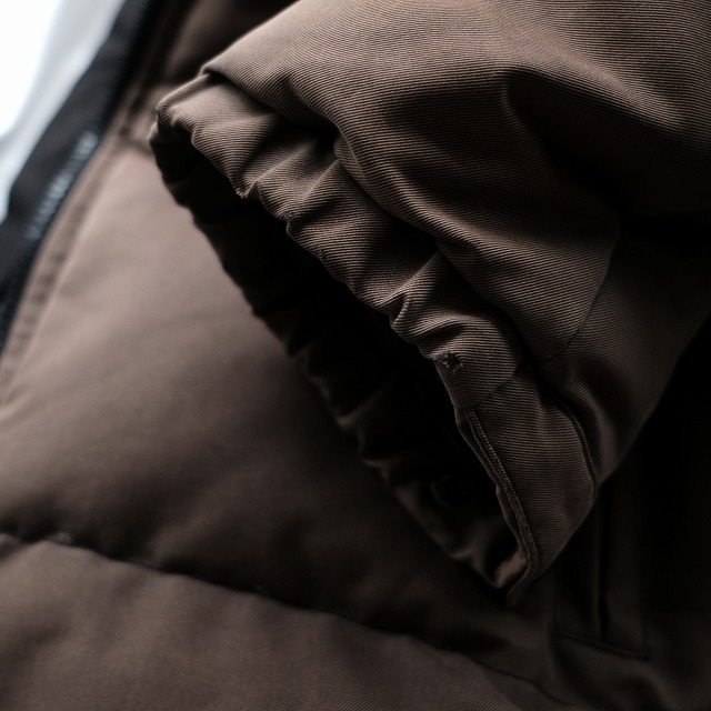 こちら流通の少ない珍しい個体となっており、生地を通常のナイロンではなくブラウンのコットンツイルを使用しております。見た目に反して非常に軽く、ナイロンタイプの着心地と違いはないです。またナイロンの弱点である耐久性も克服しており、エイジングで綺麗なときとまた違った良さが出てきそうです。