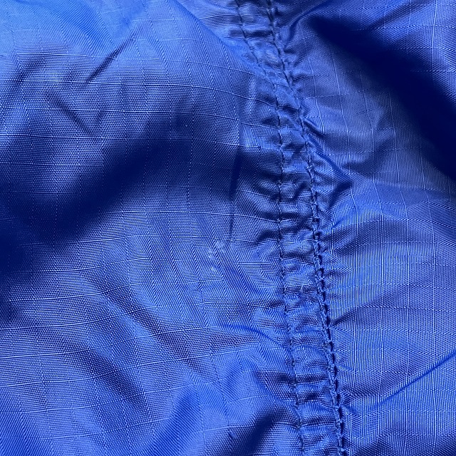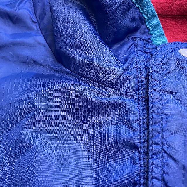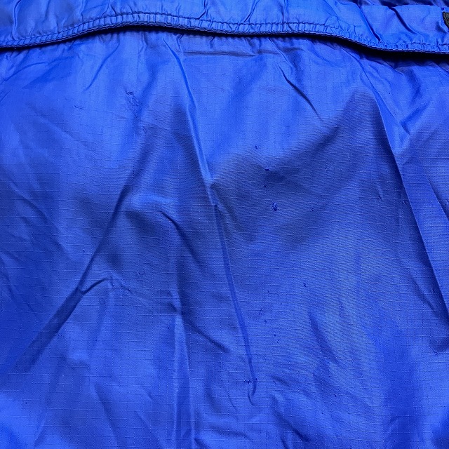 - ドローコードのゴムの伸びや、穴の若干の広がりがみられます。また、ナイロン面、所々に薄汚れや、小さな傷がみられます。その他、襟先の小さなダメージ、袖先の毛玉等の年代相応の着用感がみられ、ユーズド慣れされた方におすすめの商品です。