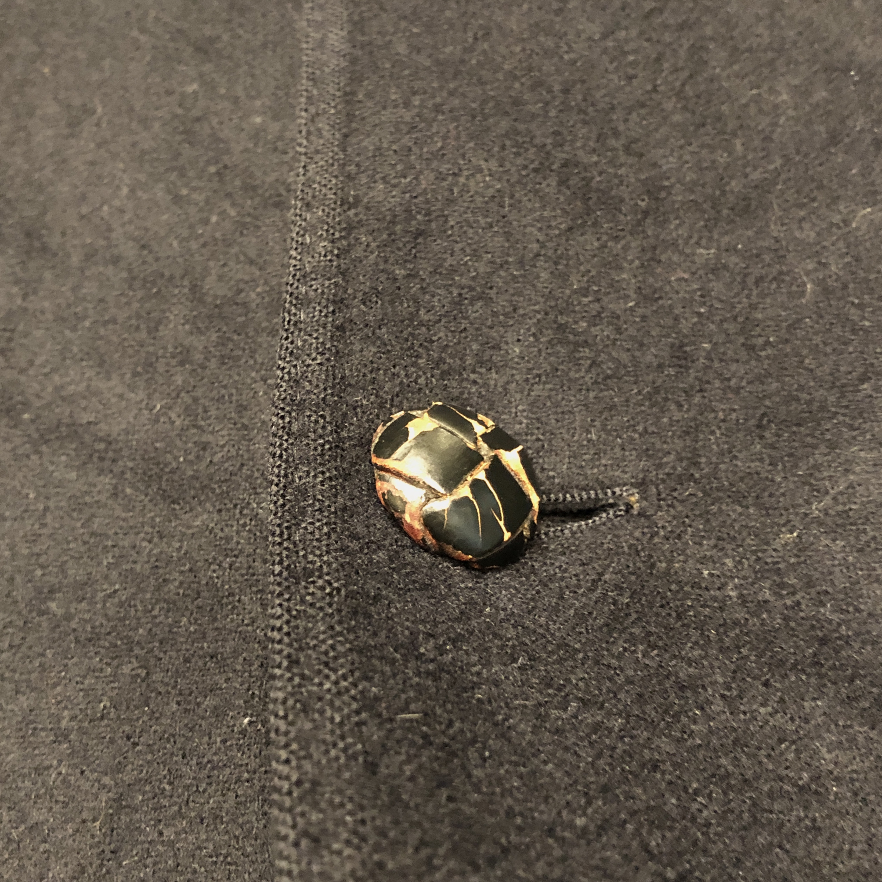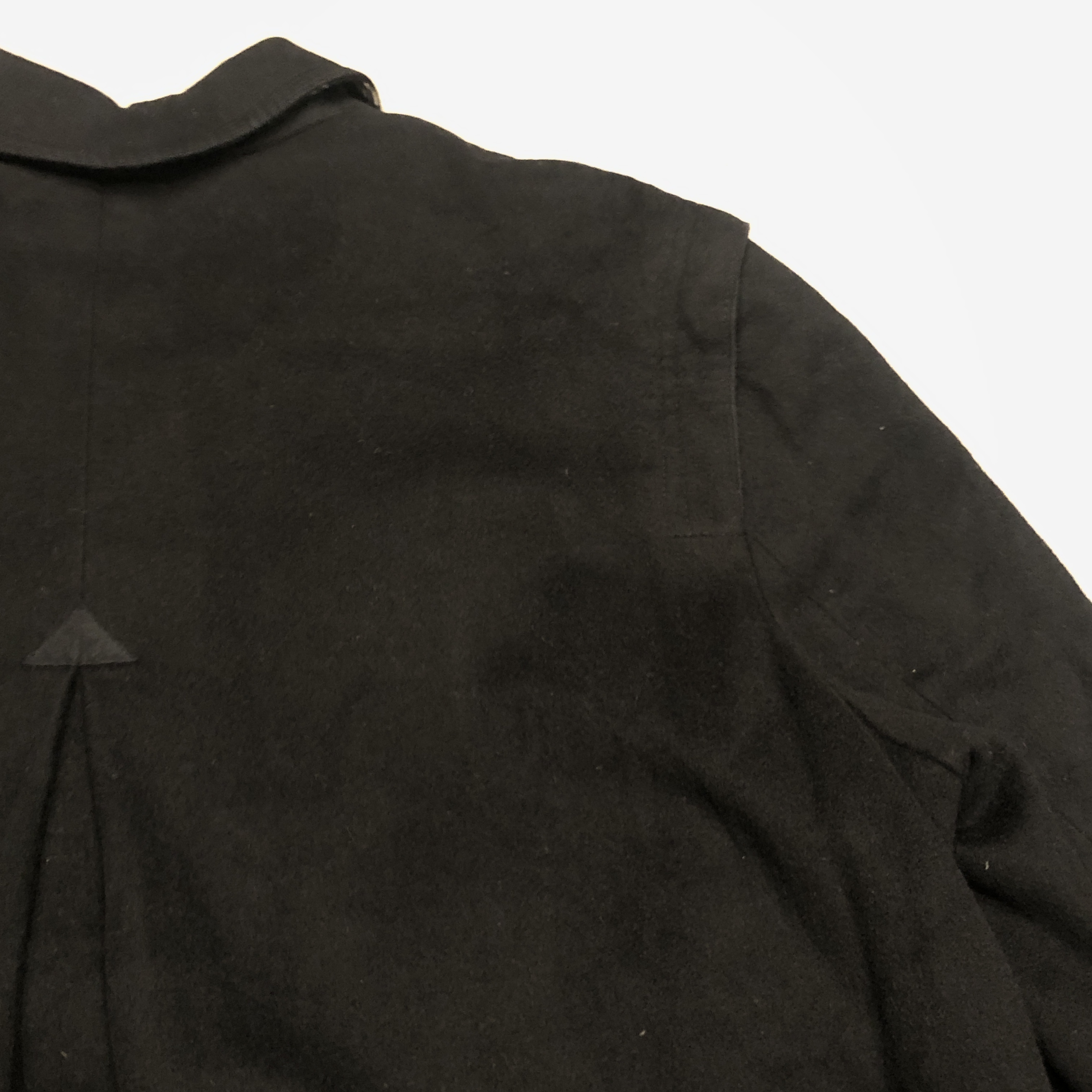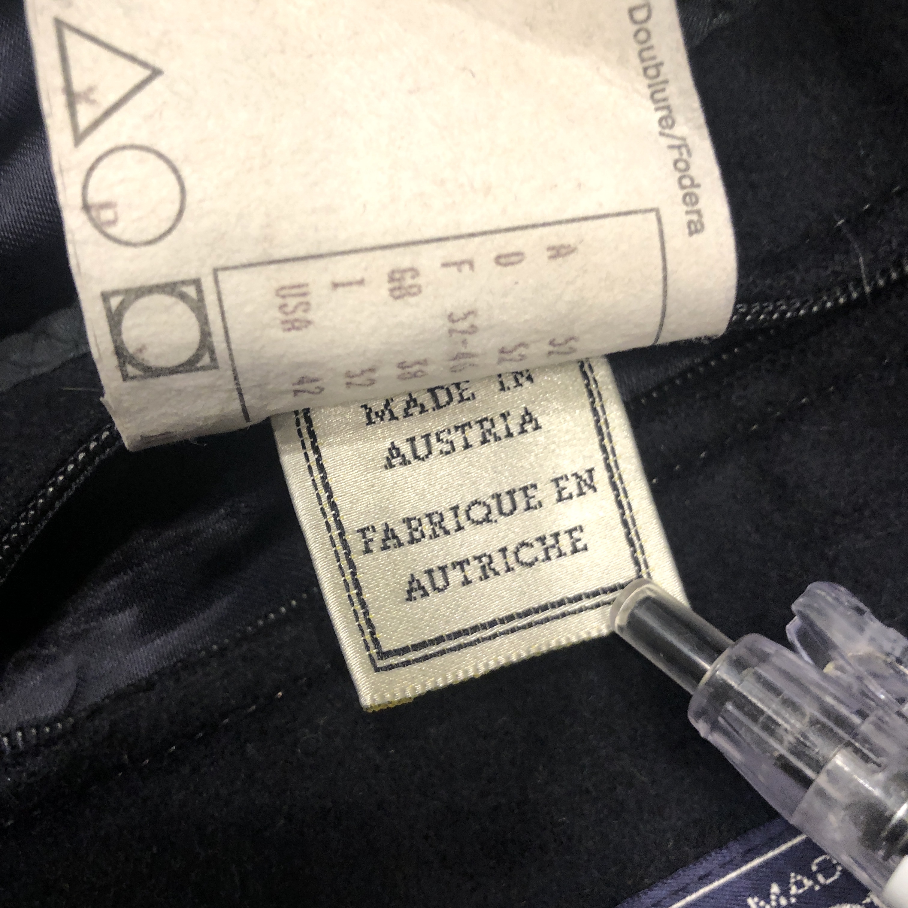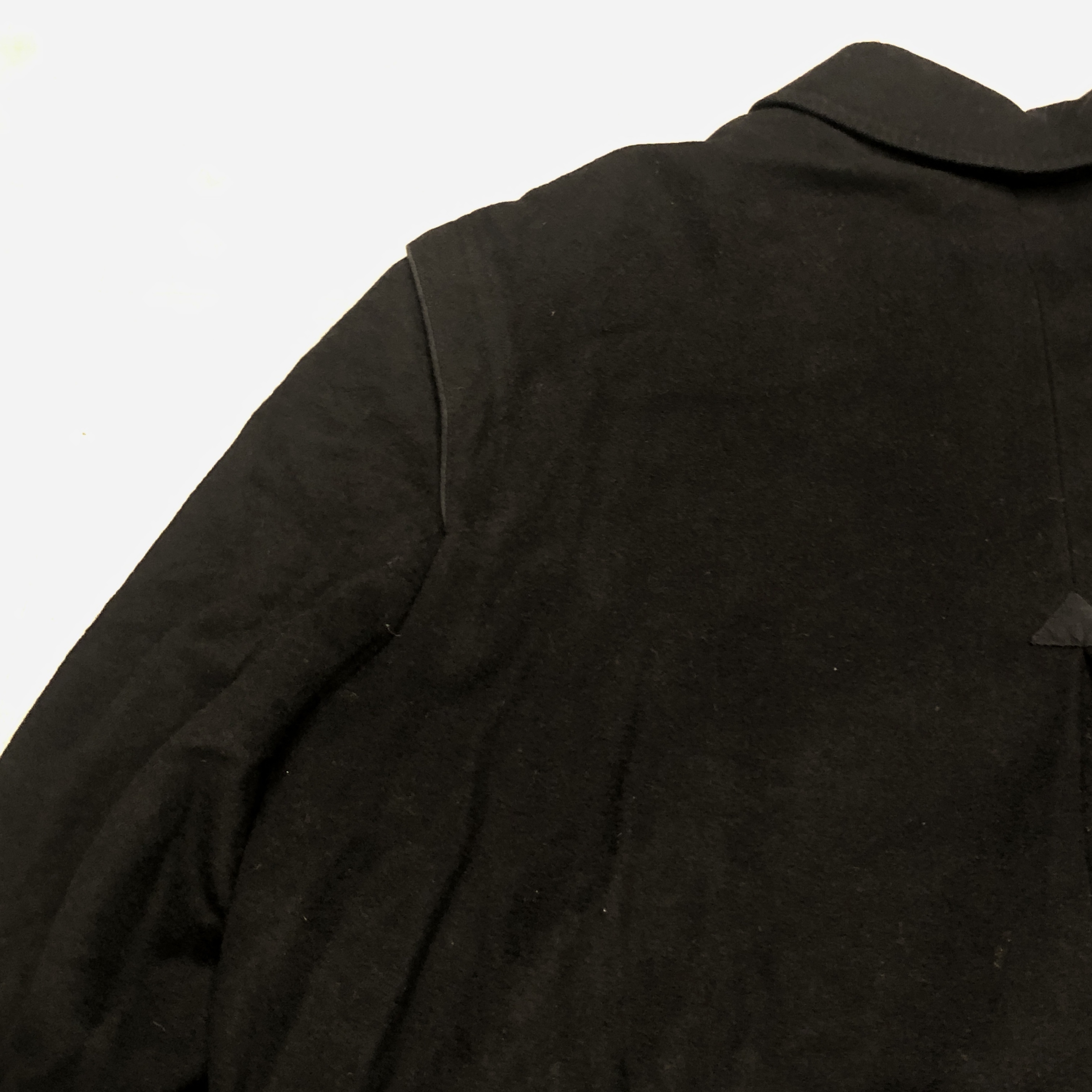 - オーストリア製のローデンクロスを贅沢に用いた、Burberrysによるオリジナル・ローデンコート。ローデンとは、オーストリア〜南ドイツの山岳地帯で狩猟や乗馬用に愛用されてきた伝統的なウール地で、雨雪を弾きながらも内部の湿気は逃がすという、ゴアテックスも顔負けの天然機能素材。本来グリーン系が主流ですが、こちらは漆黒に近いダークネイビーというのがまた洒落ています。背中には深いインバーテッドプリーツ、総裏にはブラックウォッチ系チェックのライニング、80%ヴァージンウール+20%アルパカ混。着るだけでウィーンの街角に立っているような気分にさせてくれる、風格と詩情を併せ持った一着です。バーバリーのトレンチとはまた別軸の、ヨーロッパ上流階級の休日服——その余裕を、現代の装いに取り入れてみませんか。