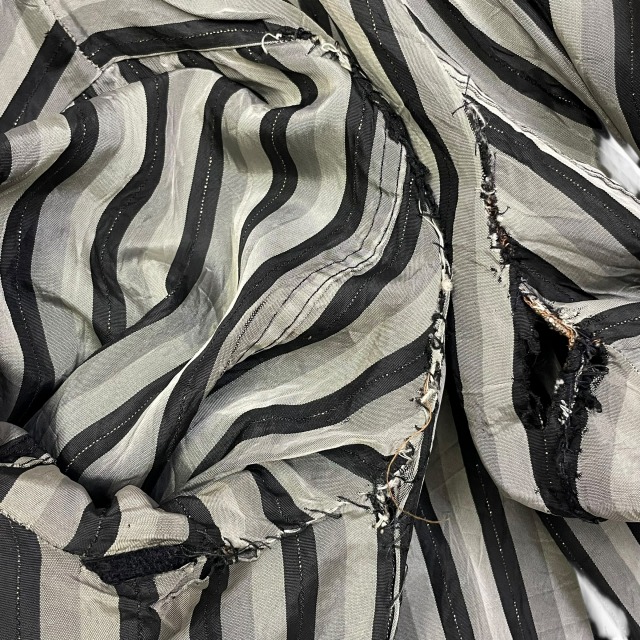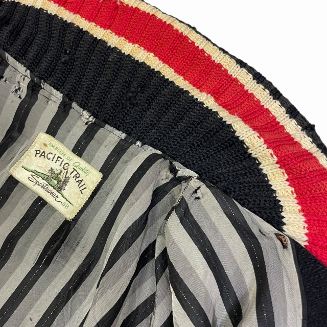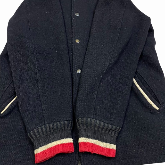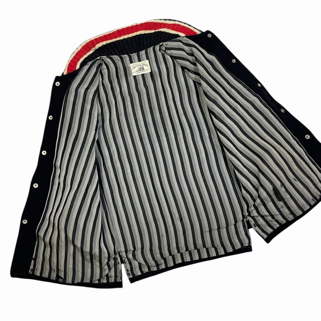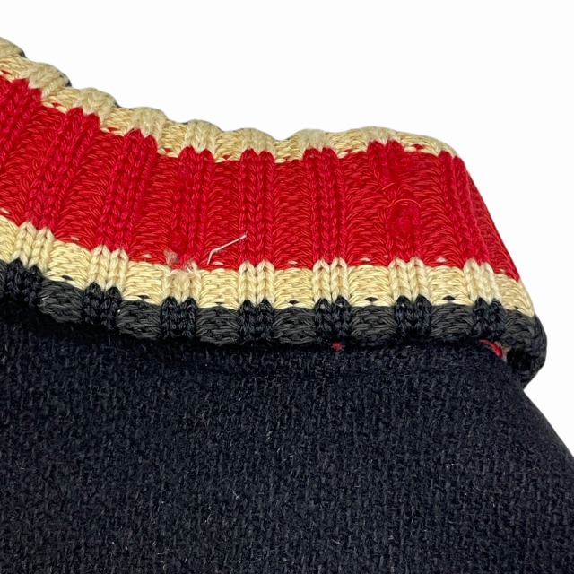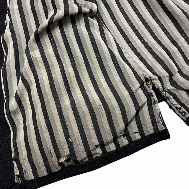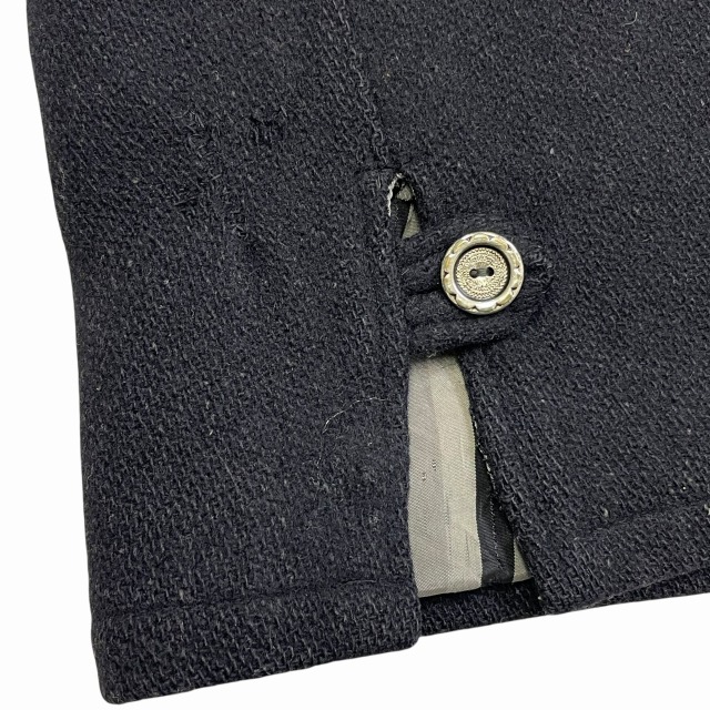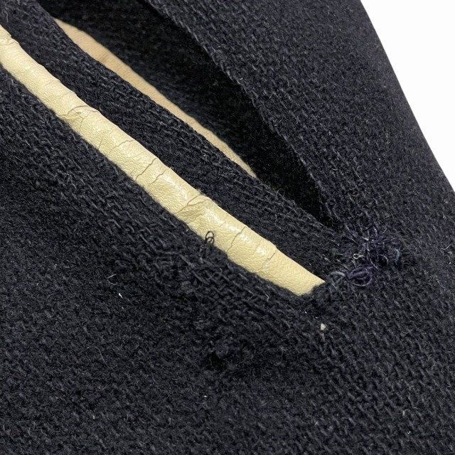 リブ部分、ポケット、後左裾、右肘付近、裏地等に手縫いで簡易的なお直しがございます。