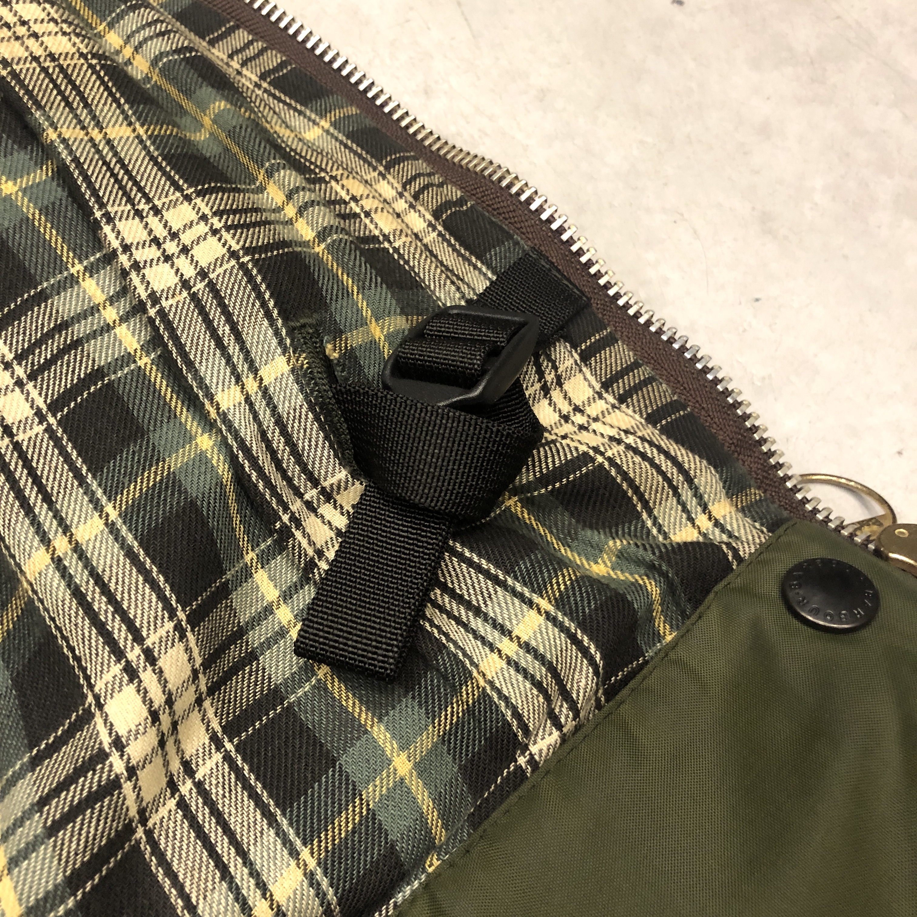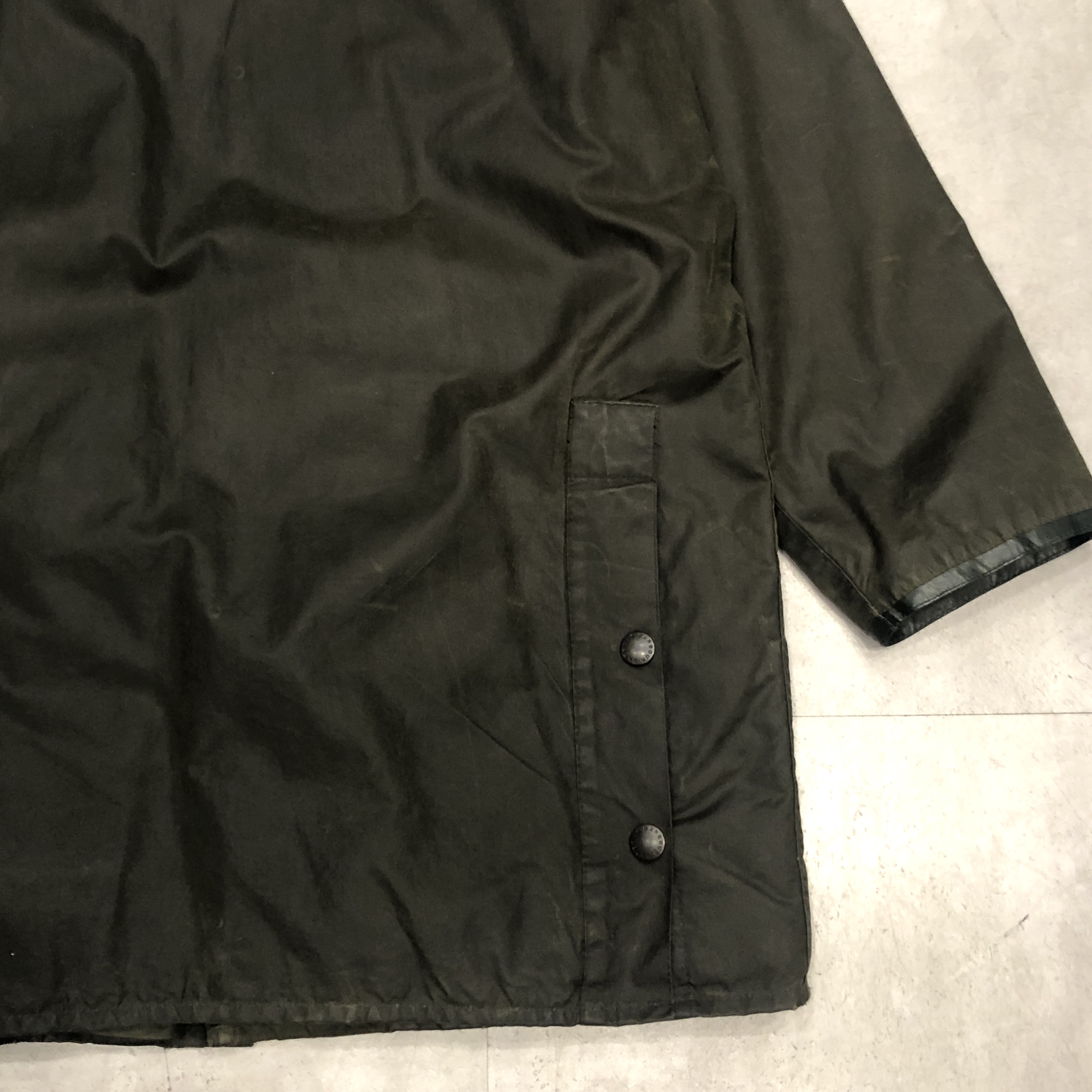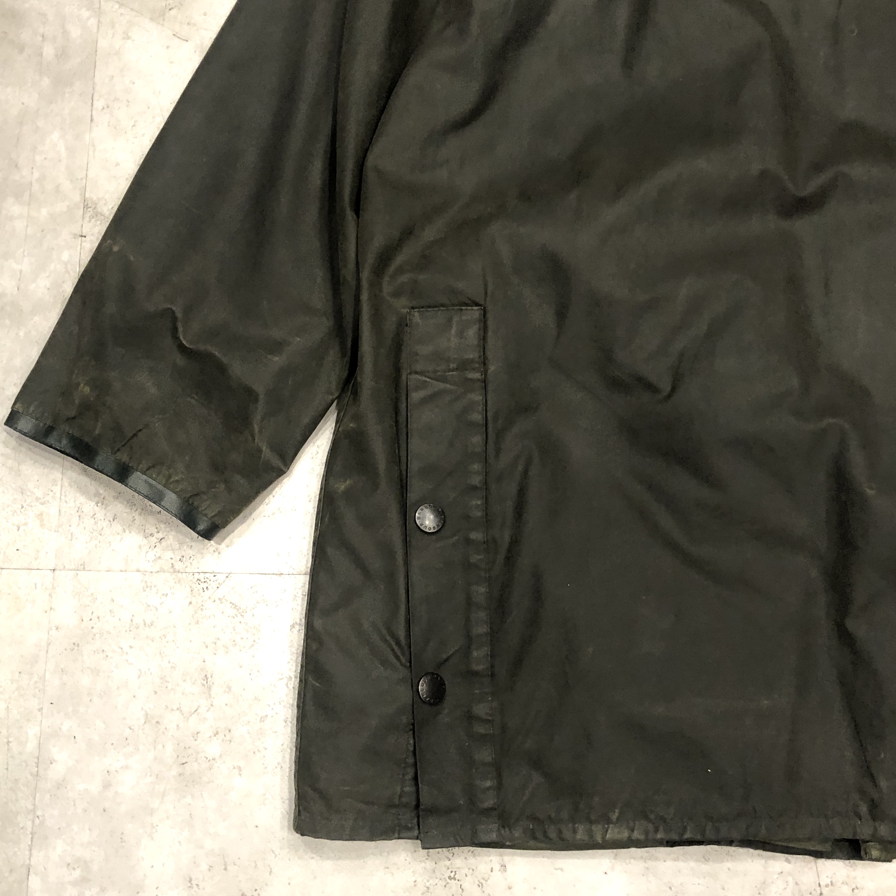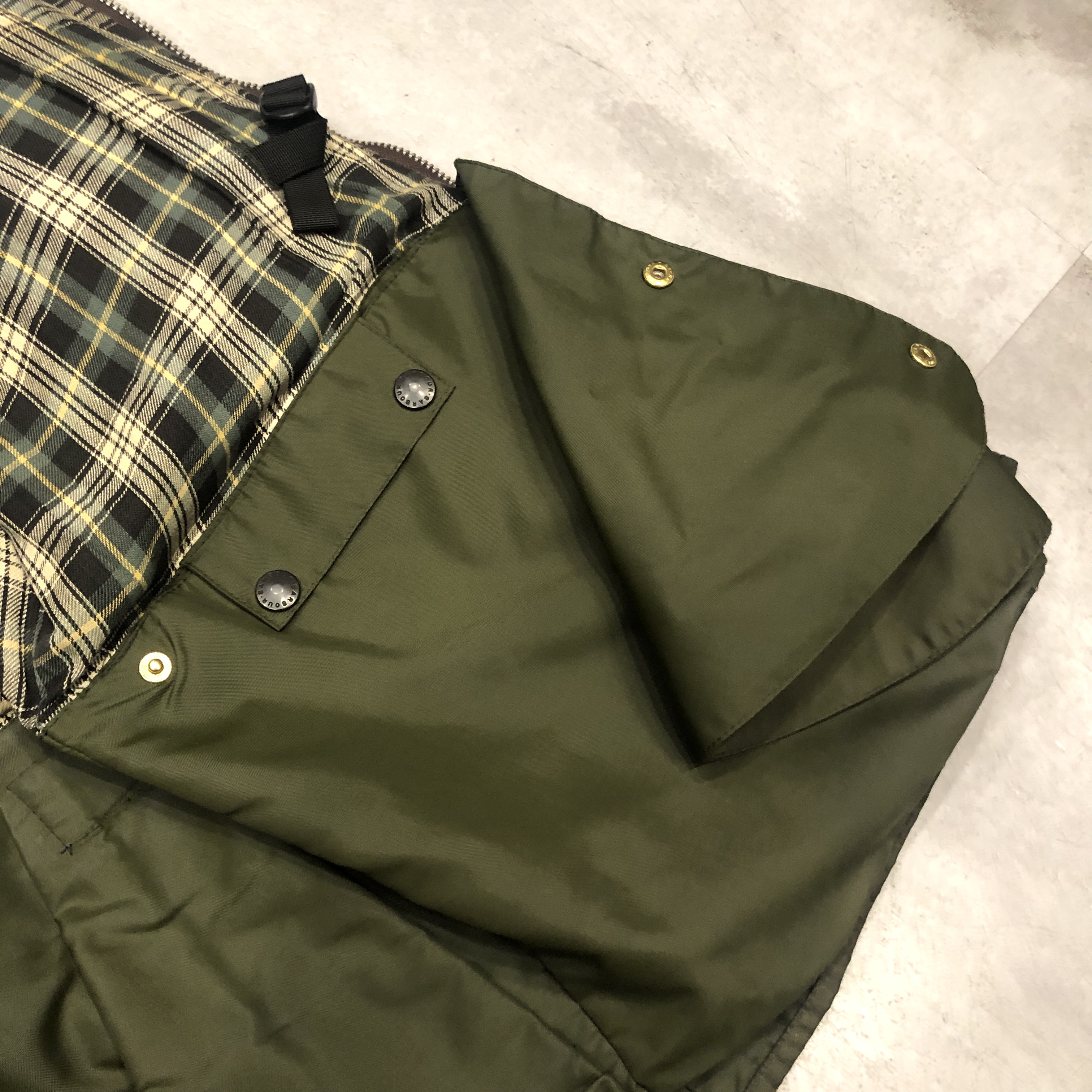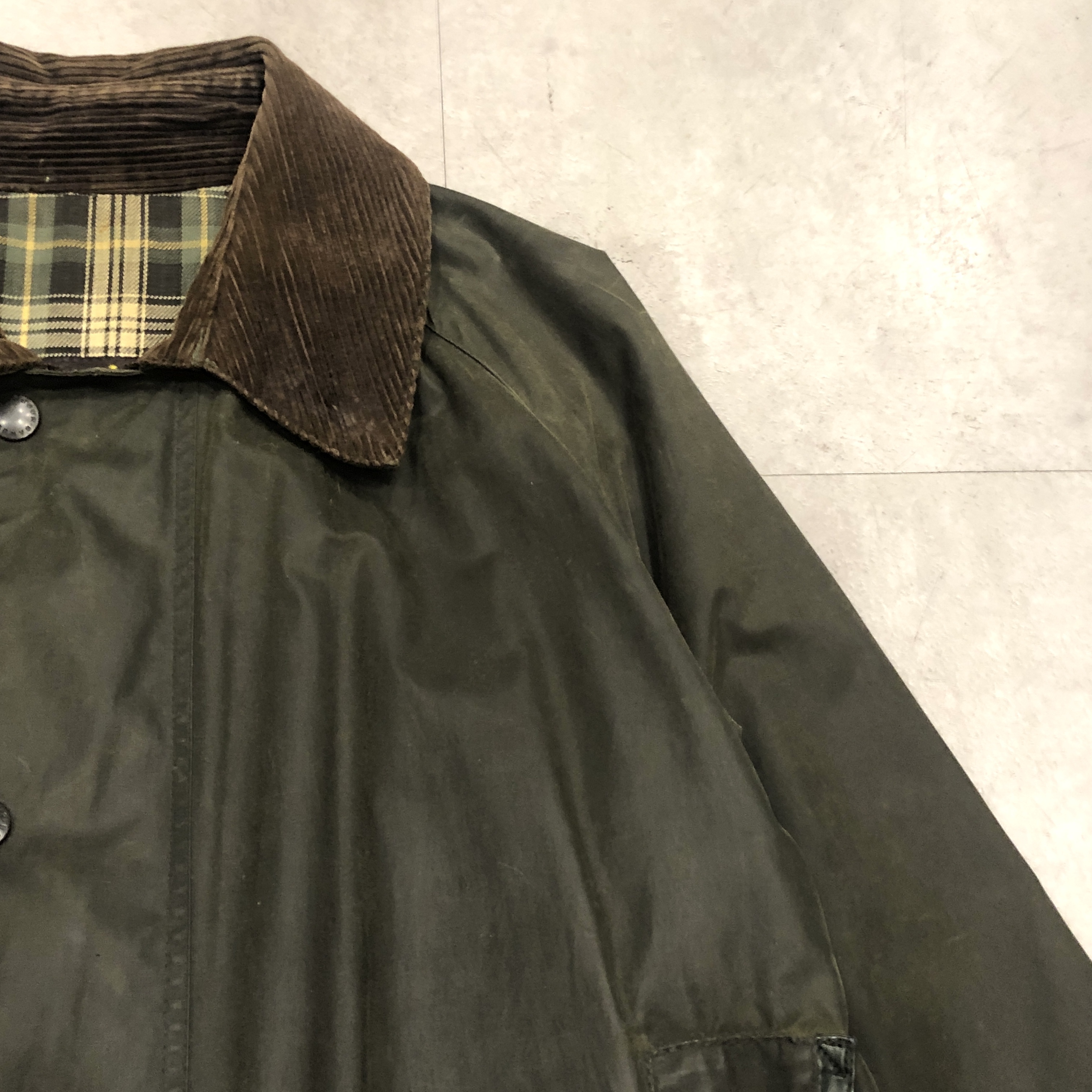 - バブアー好きなら誰もが通る王道ビデイルやボーダー。そのさらに奥にある“通好みの一枚”がこのMARK PHILLIPS(マーク・フィリップス)モデル。英国王室アン王女の元夫にしてオリンピック金メダリストの名を冠するだけあり、ただのフィッシング・ハンティング用ではなく馬術視点で設計された特別仕様。深く取られた後ろのベンチレーション、鞍に跨る前提のゆったりとしたアームと裾周り、そして胸元に光る馬のタグ。3ワラントの荘厳なパッチと並んで付くこのタグを見ただけでテンションが上がる人は、きっとかなりの“沼”の住人でしょう。色味は使い込むほどに鈍く艶を増すオリーブ。コーデュロイの襟もいい感じに焼けてきており、これからさらに仕上がる余地を残した熟成途中の一本です。定番を2周くらいした玄人の方、ぜひ次はここで遊んでみませんか?