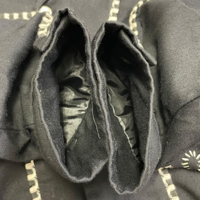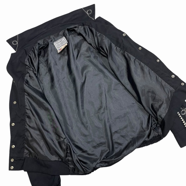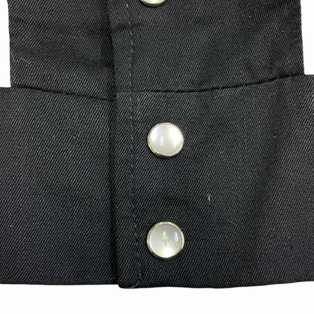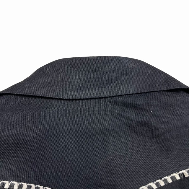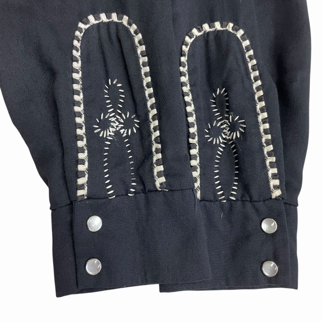 サイズ M 実寸 肩幅45.5㎝ 身幅55.5㎝ 着丈61㎝ 袖丈61.5㎝ ※若干の誤差はご了承ください ・サイズガイド 肩幅:肩~肩 身幅:脇下~脇下 袖丈:肩~袖先 着丈:背面中心部 襟の付け根~裾 状態 スレ、薄汚れ、糸ツレが多少ございますが、 目立つ大きなダメージや汚れはございませんので、問題無く着用可能です。 商品詳細 1980'S OLD H BAR Cのウエスタンジャケット。 カラーはブラックで、素材はレーヨンです。 いくつかパターンのある刺繍ですが、当個体は人気のクルクルしたパターンの刺繍が入ります。 近年非常に需要の高いウエスタンジャケットですが、入荷の機会は決して多くありません。 気の利いたビンテージをお探しの方に是非オススメしたい1着です!! ※実店舗と併売している為、ご注文時に売り切れの場合がございます。 予めご了承下さいませ。 ※お使いのモニター環境により、色の見え方が実物と異なる場合がございます。 予めご了承ください。