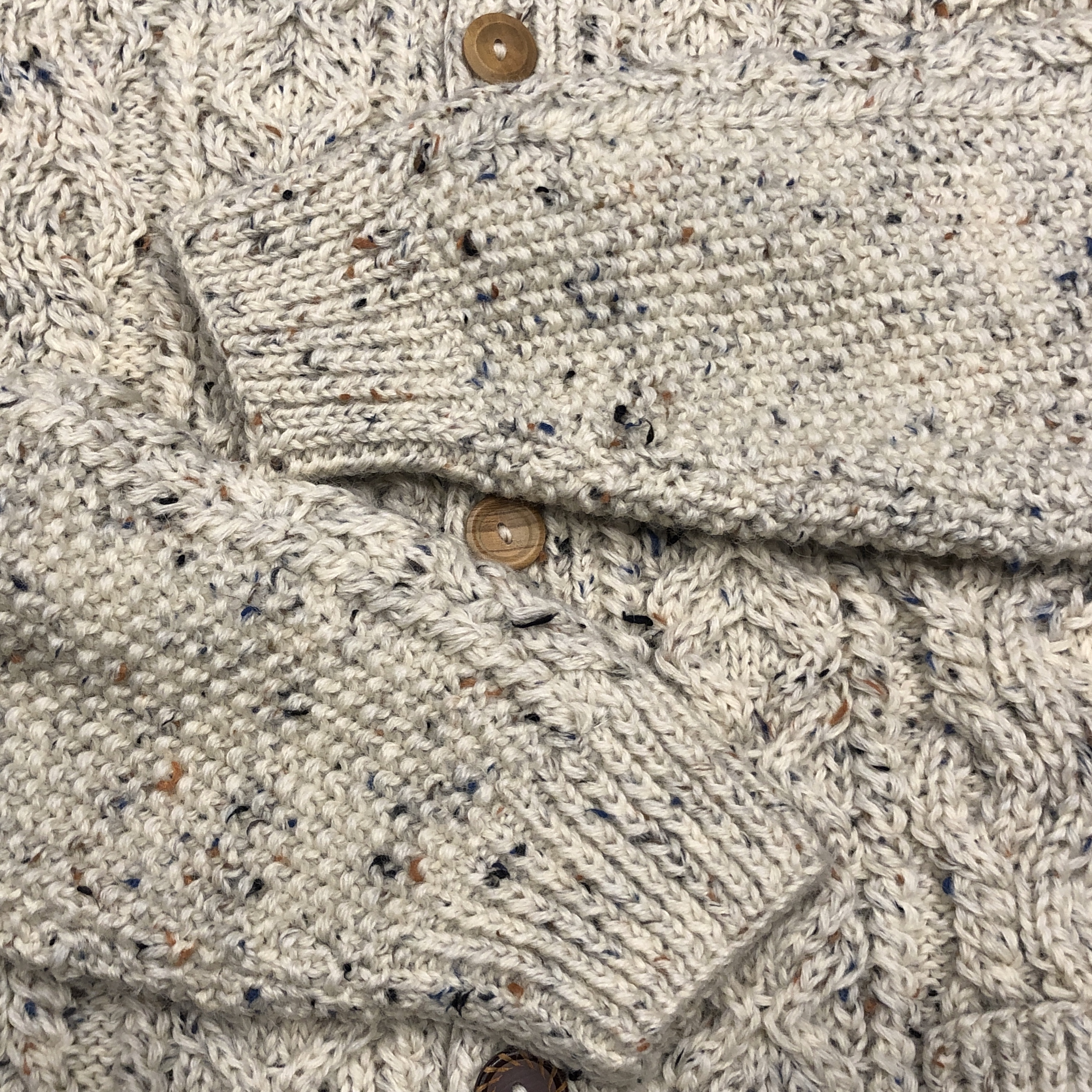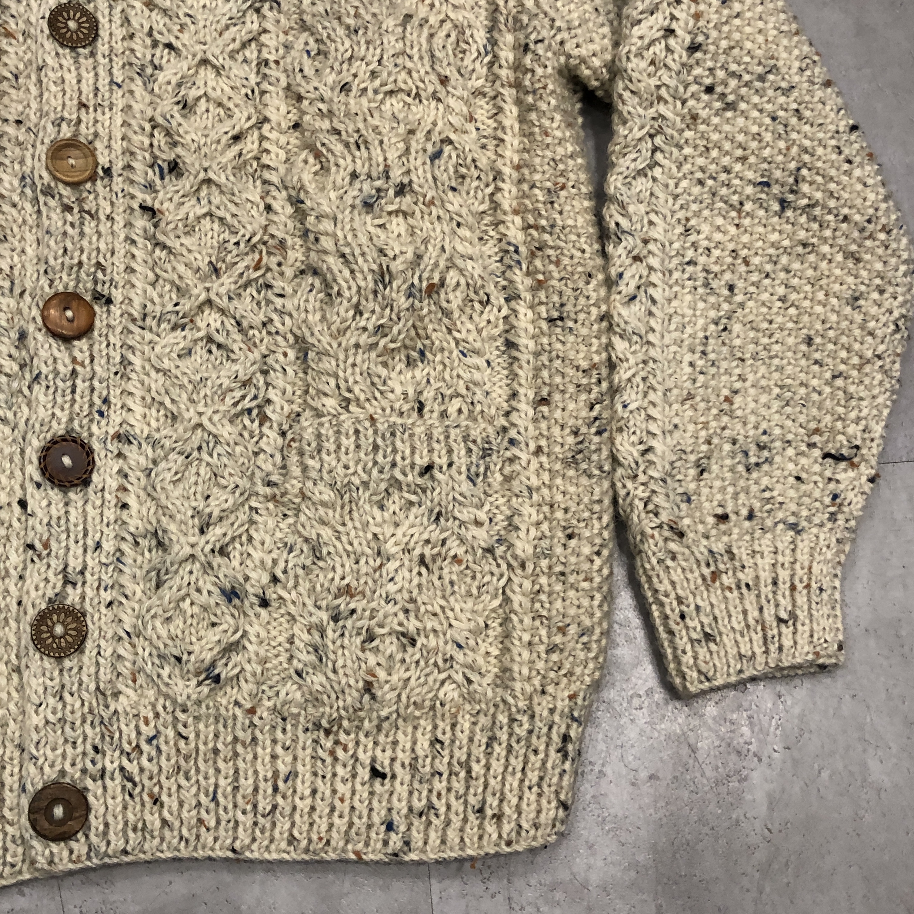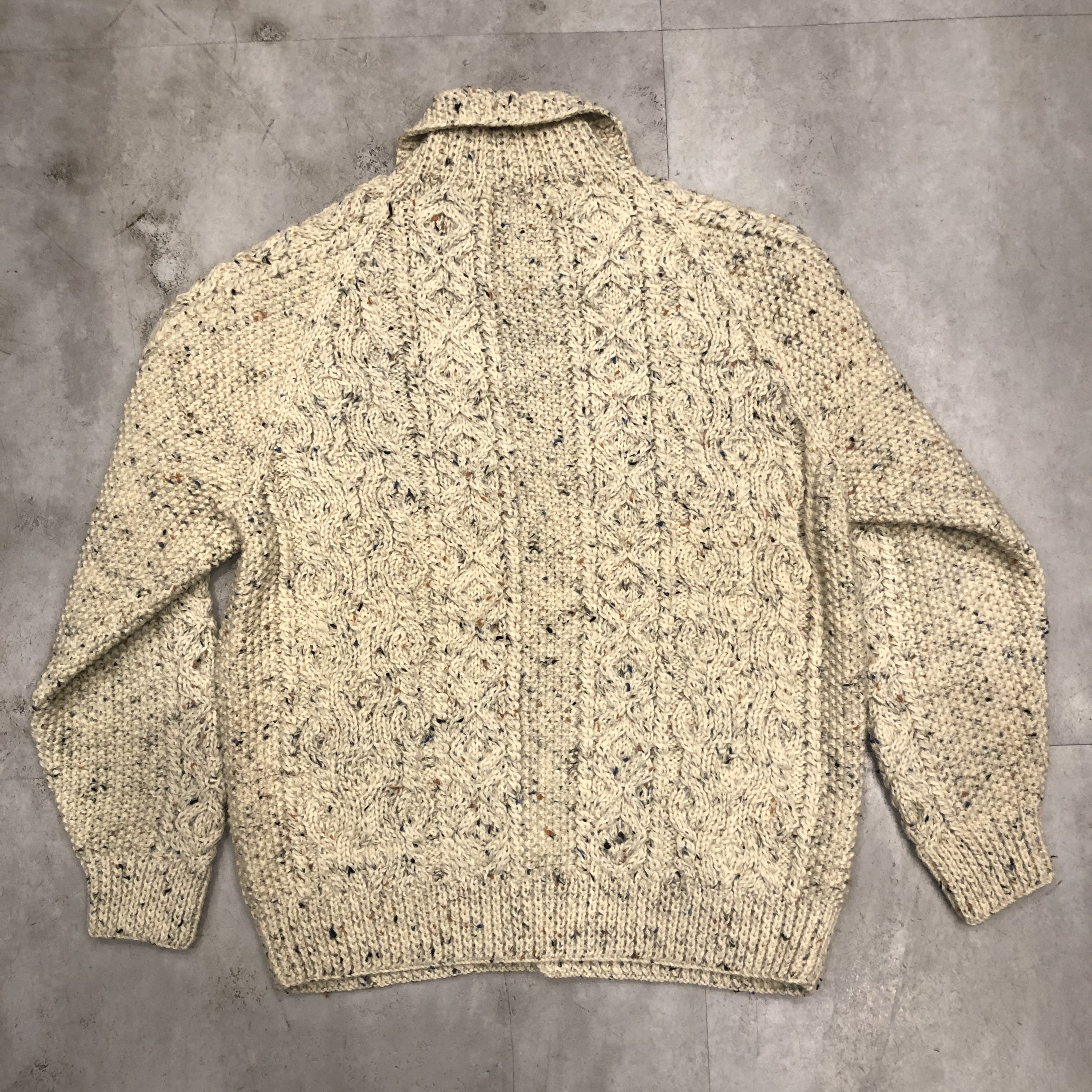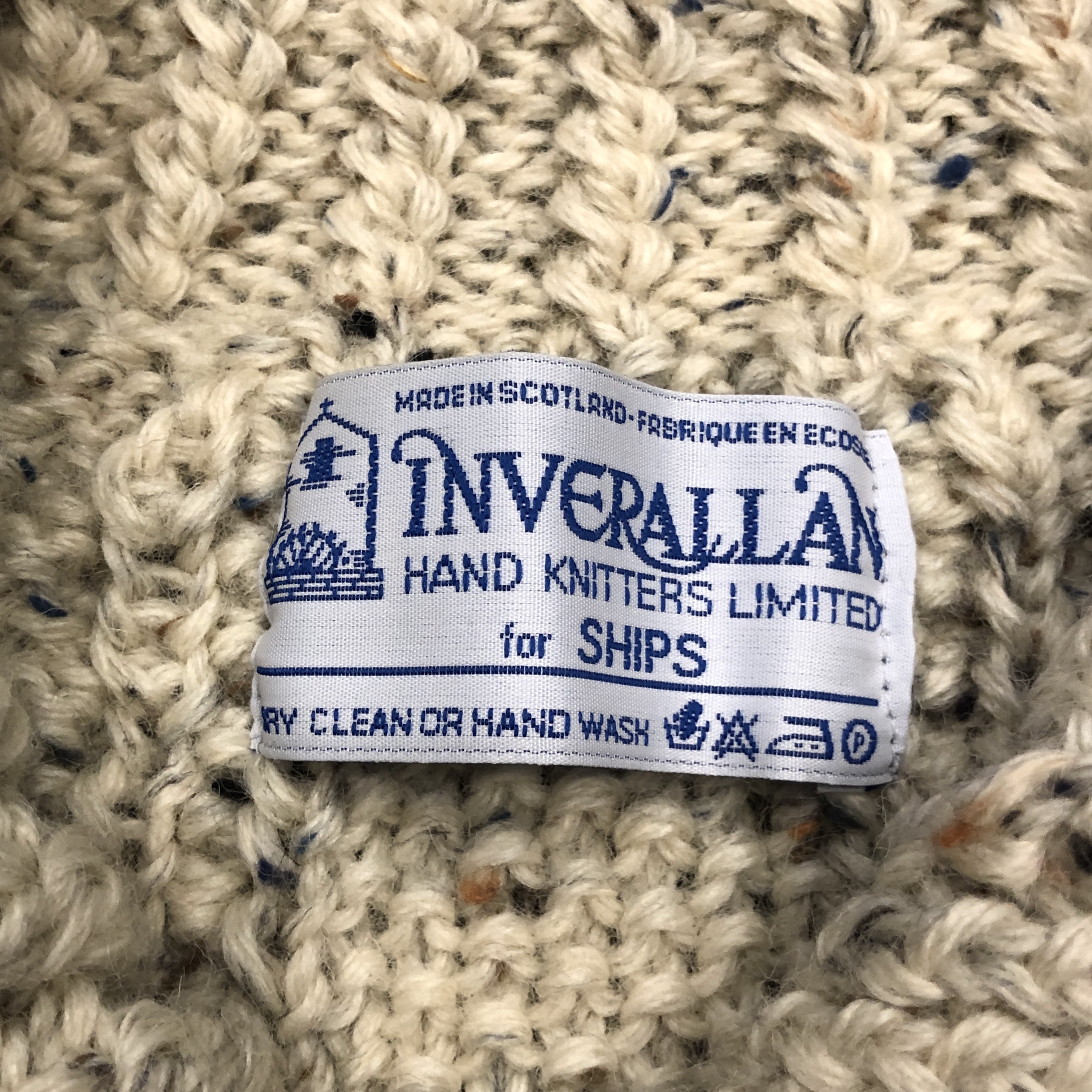 - 1970年代より続くスコットランド発の名門〈INVERALLAN〉による、名作「3A」ハンドニットカーディガンのご紹介です。熟練した職人の手仕事により、1着編み上げるのに60時間以上を要するとも言われる名品。クラシックなアラン編みの模様と、存在感のあるウッドボタン、ざっくりとしたピュアニューウールの肉厚な風合いが相まって、まさに“一生モノ”と呼ぶにふさわしい佇まいです。