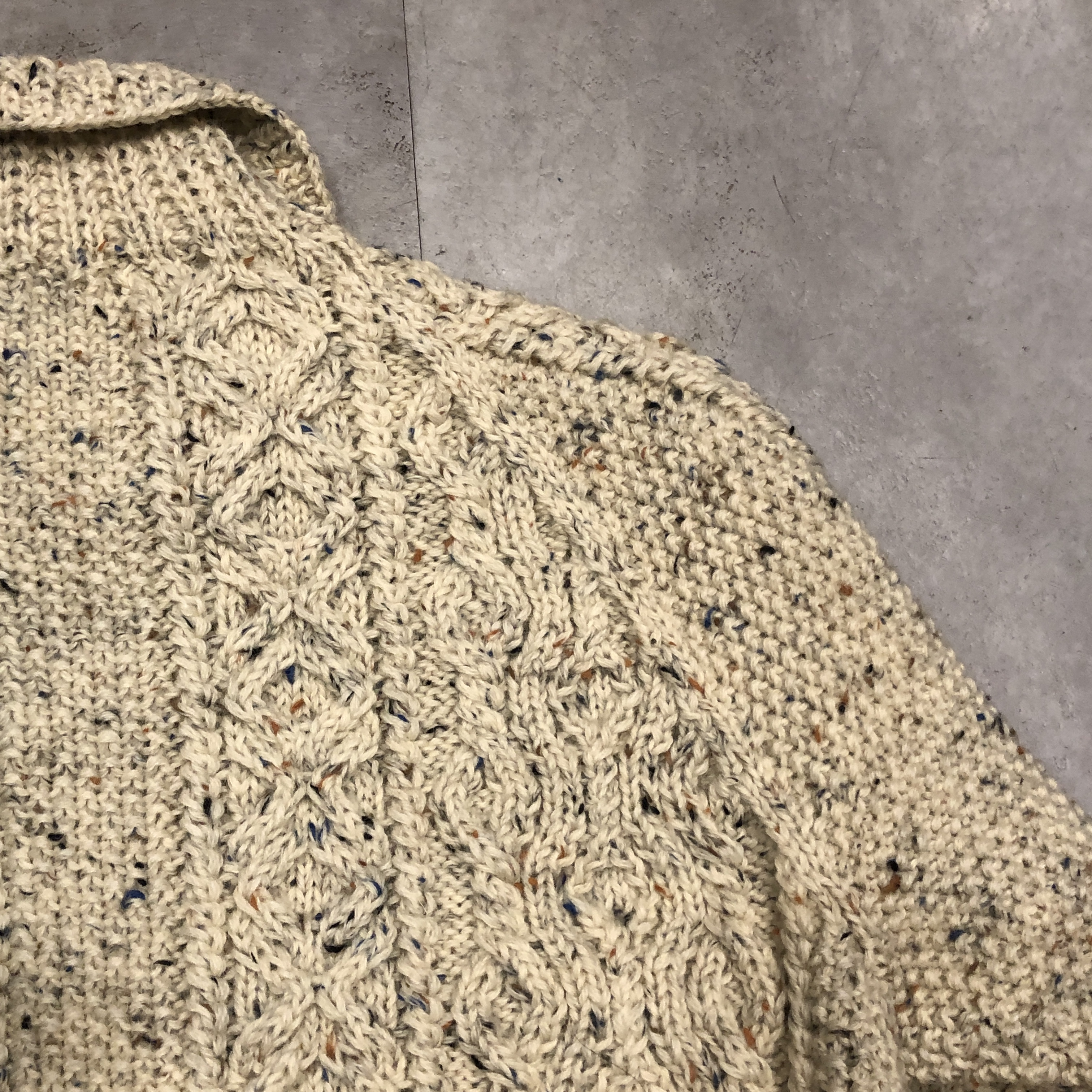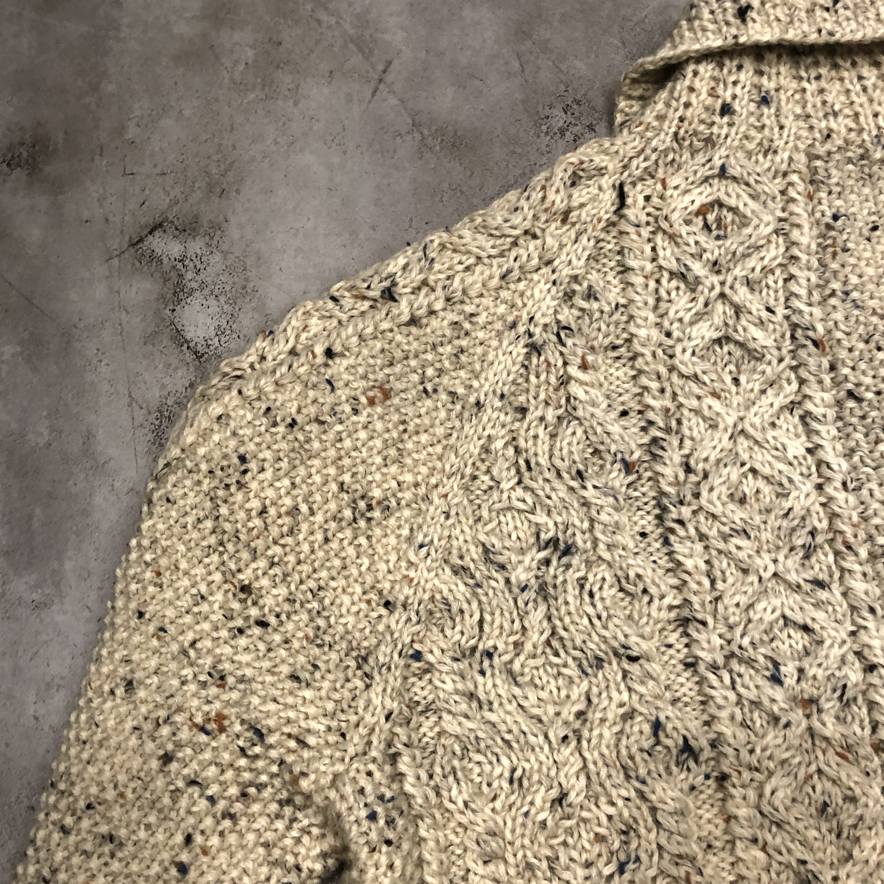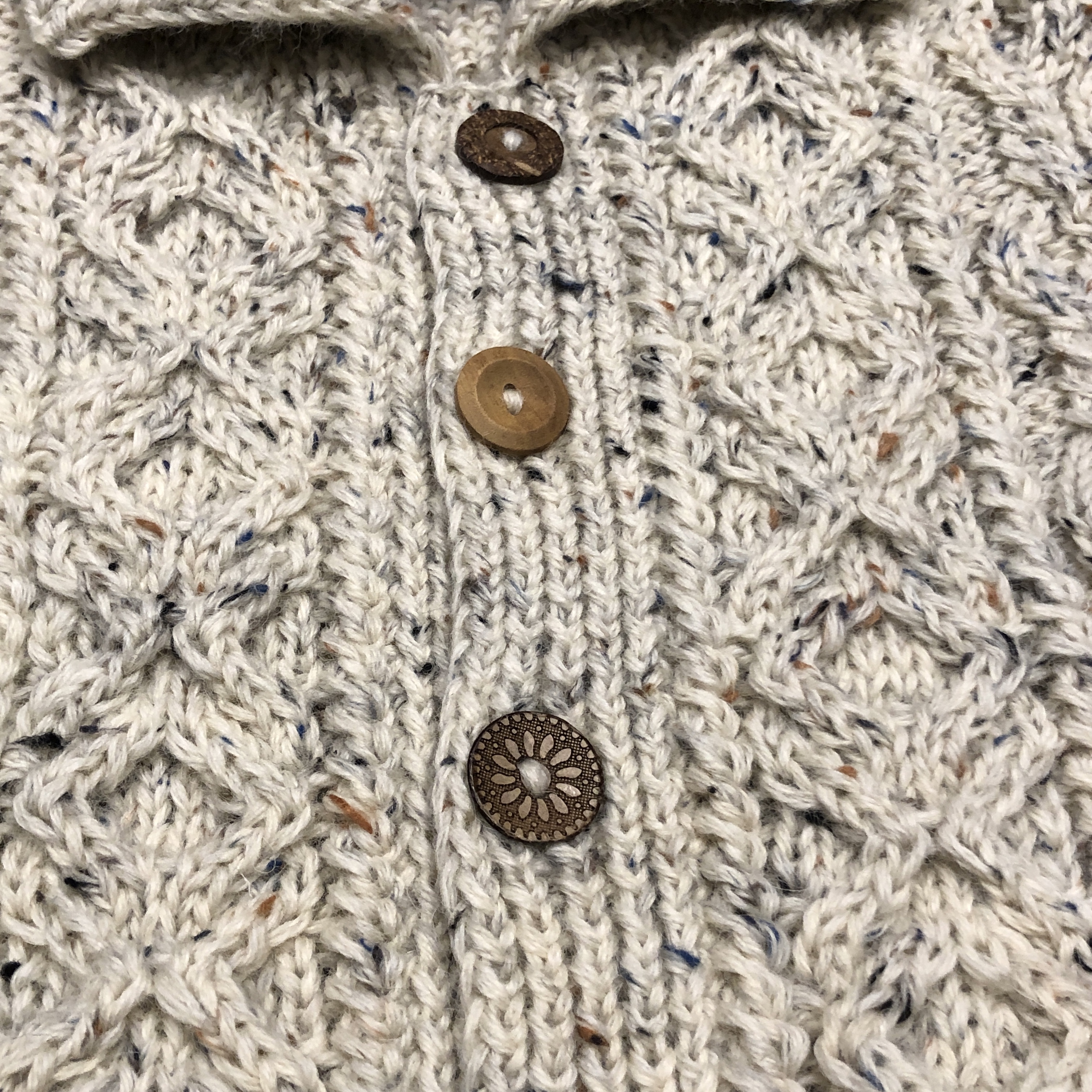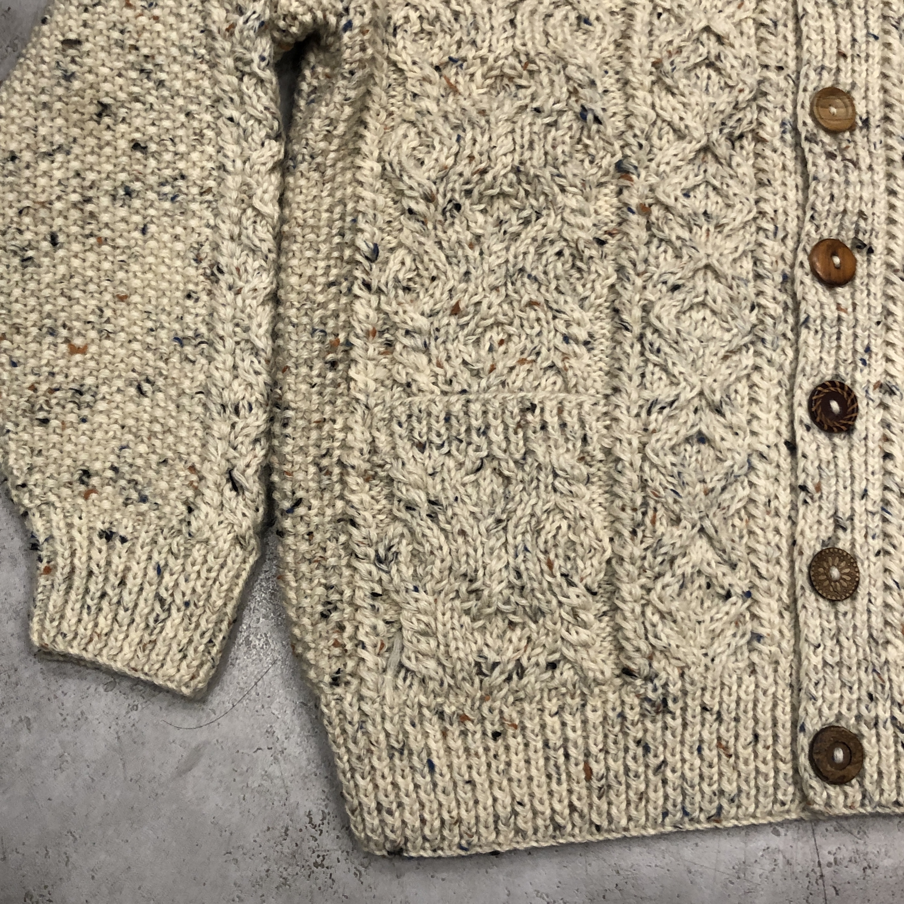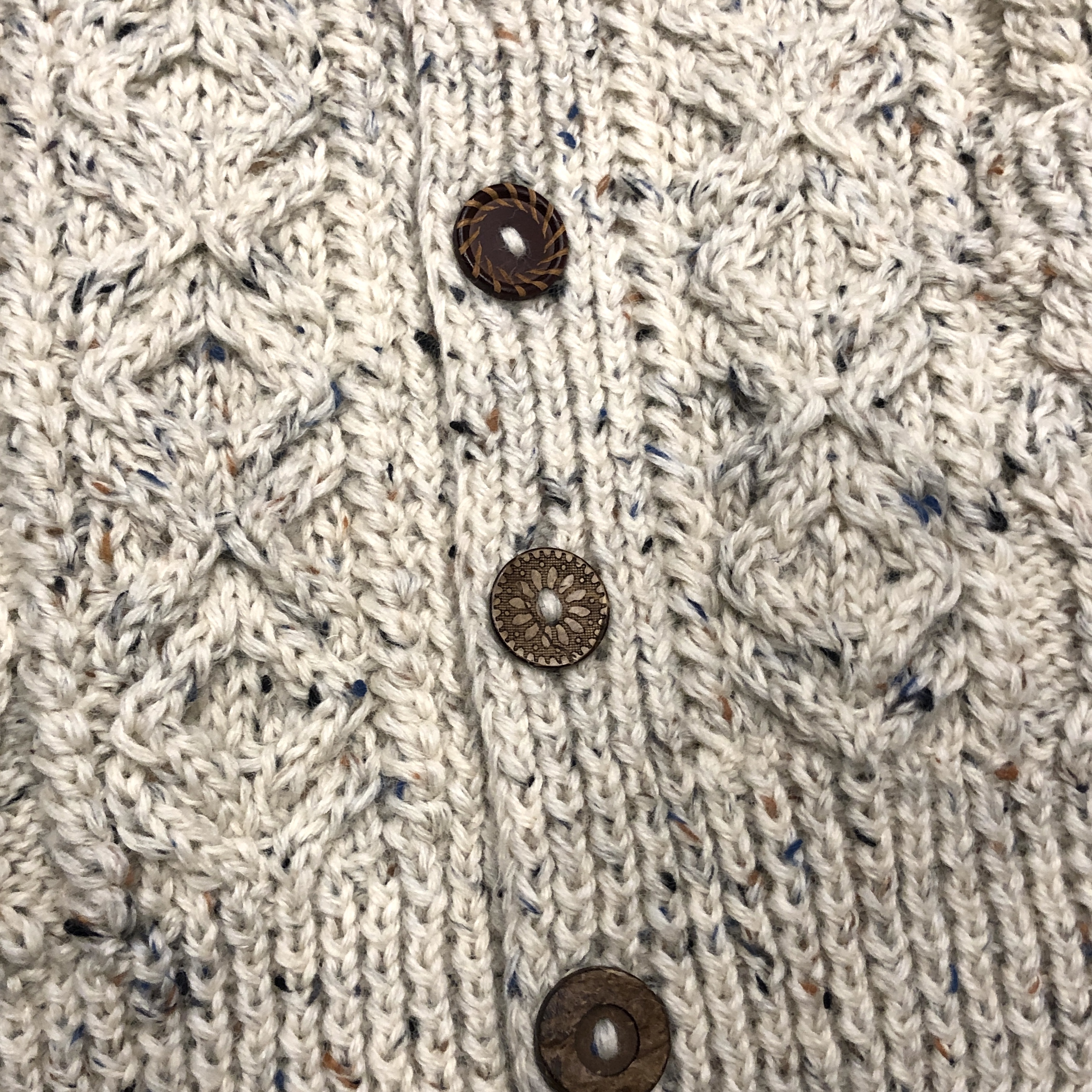 - 1970年代より続くスコットランド発の名門〈INVERALLAN〉による、名作「3A」ハンドニットカーディガンのご紹介です。熟練した職人の手仕事により、1着編み上げるのに60時間以上を要するとも言われる名品。クラシックなアラン編みの模様と、存在感のあるウッドボタン、ざっくりとしたピュアニューウールの肉厚な風合いが相まって、まさに“一生モノ”と呼ぶにふさわしい佇まいです。