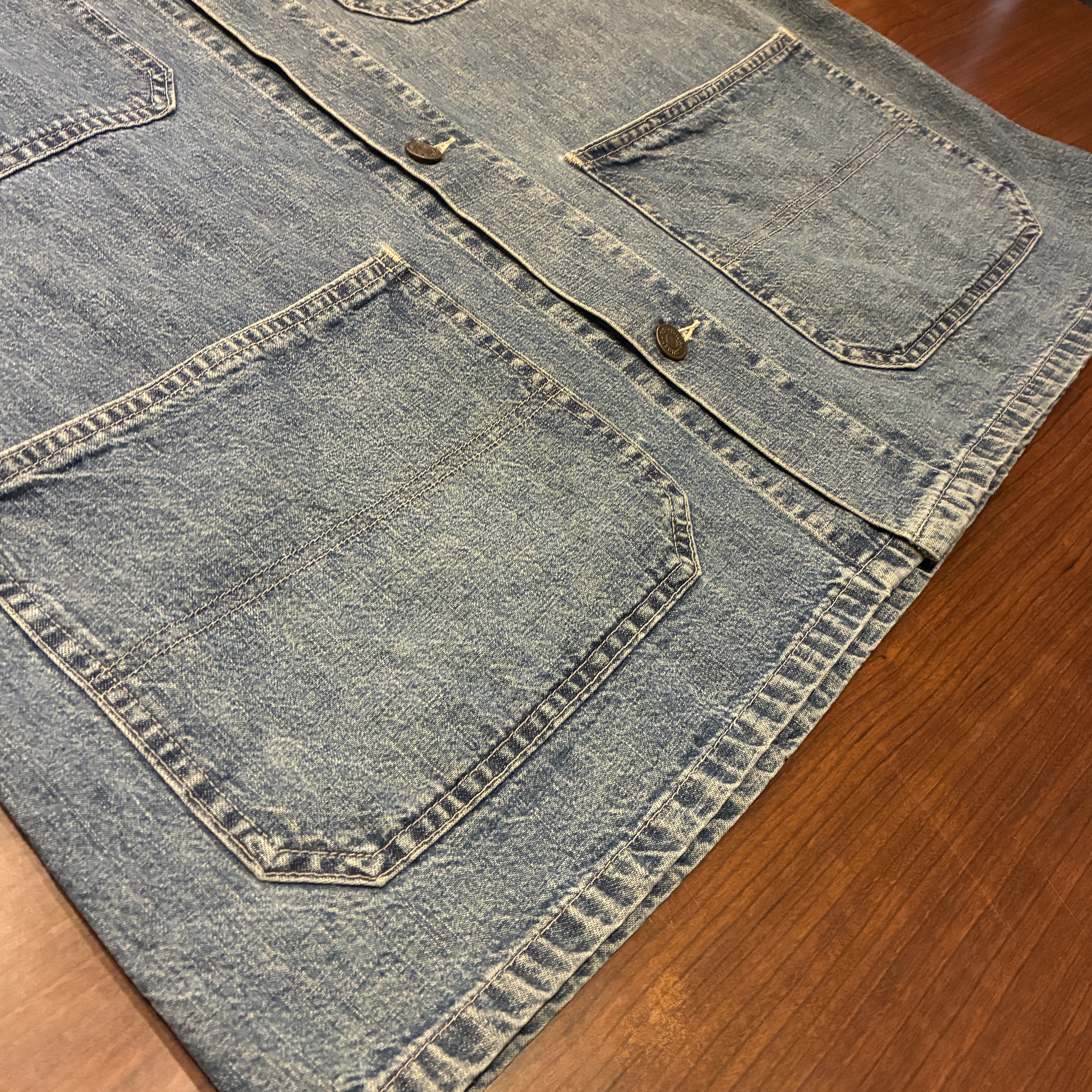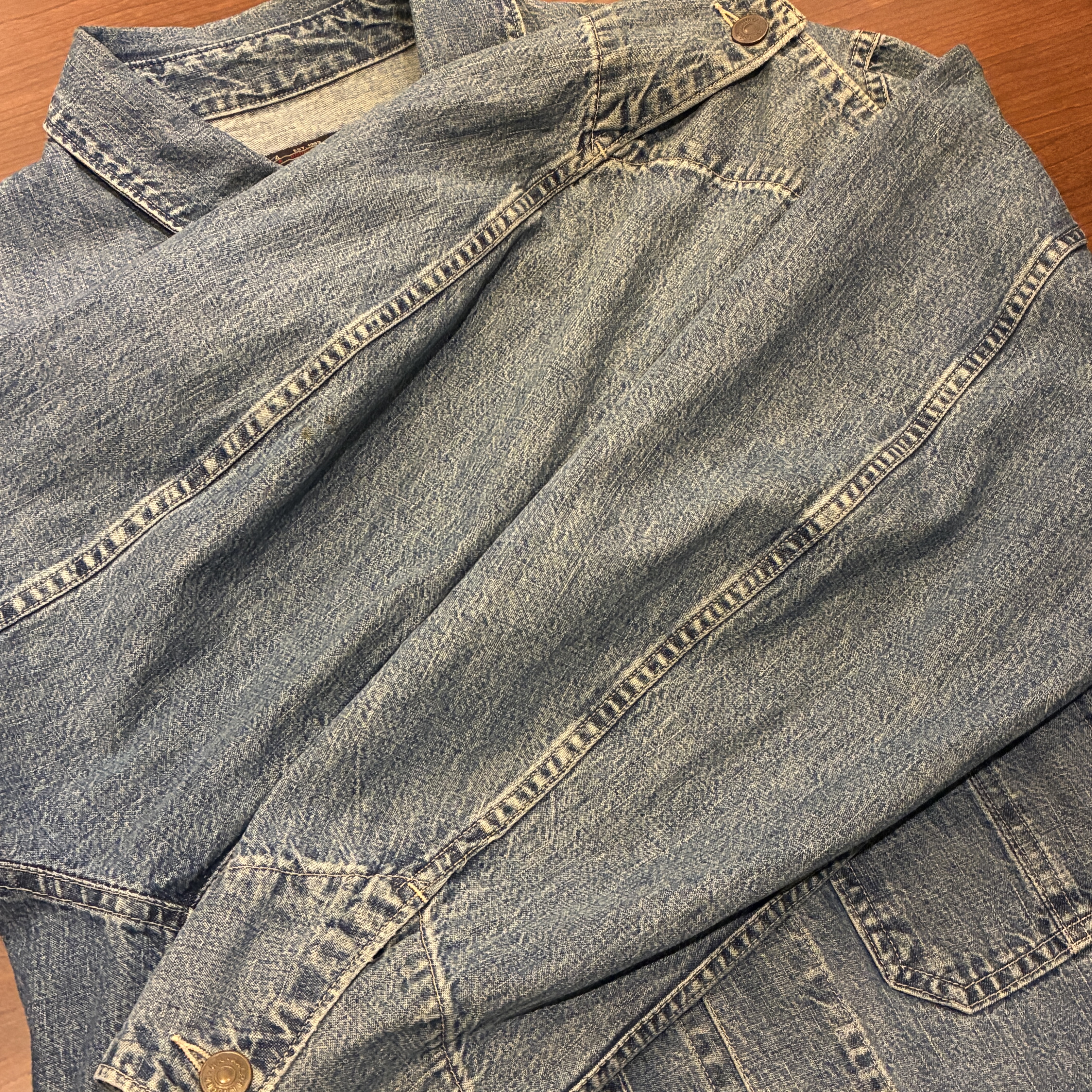 - 全体にアタリや擦れ、色落ち等の年代相応の着用感がございますが目立つ汚れやダメージは無く、古着慣れされた方でしたら問題無く着用していただける状態です。
