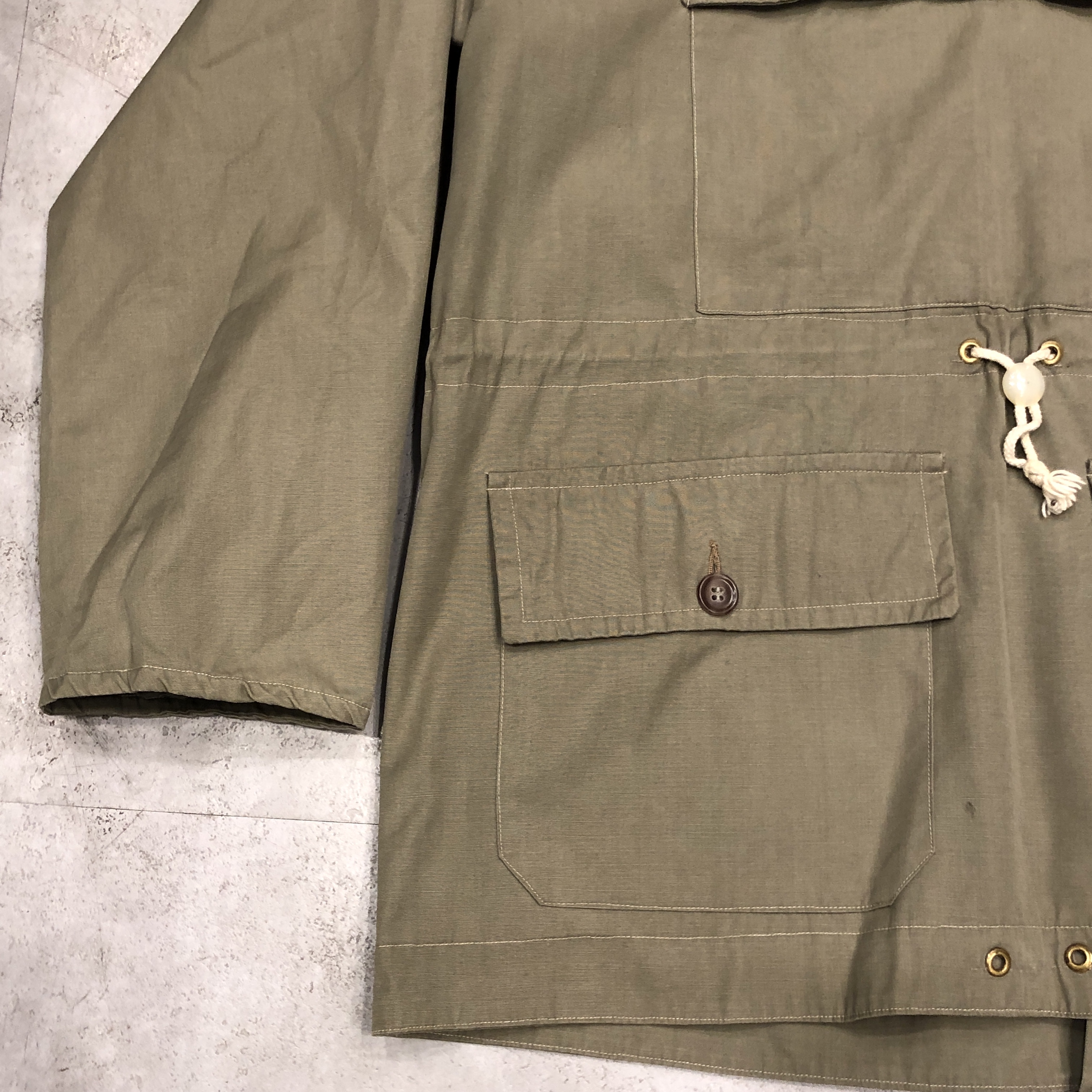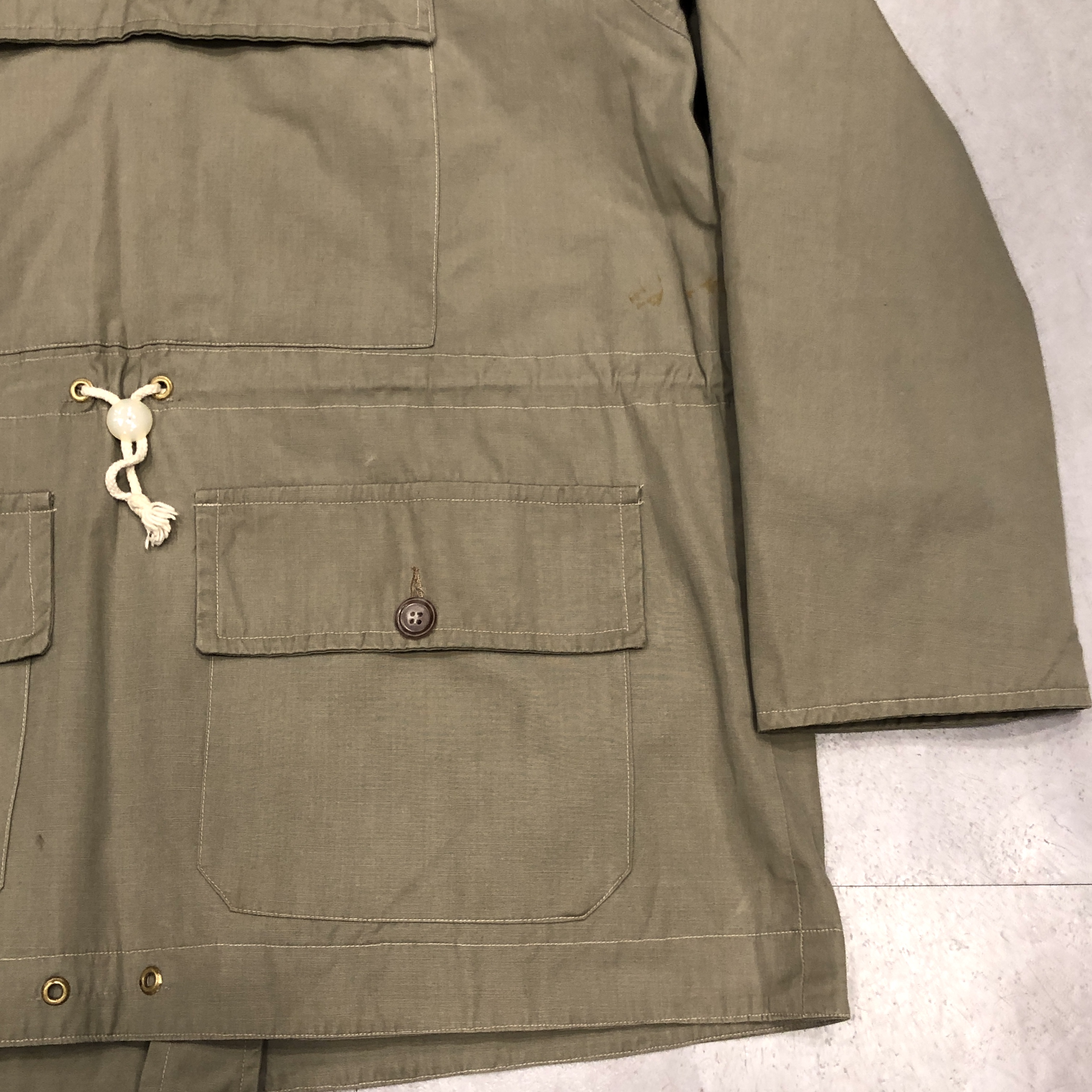 - 年代相応の着用感、スレ、アタリ、左脇やフードの汚れ等が画像の様にございますが、古着慣れされている方でしたら問題なくお使いいただける範囲です。