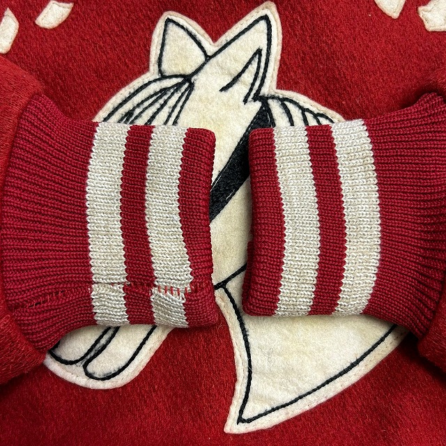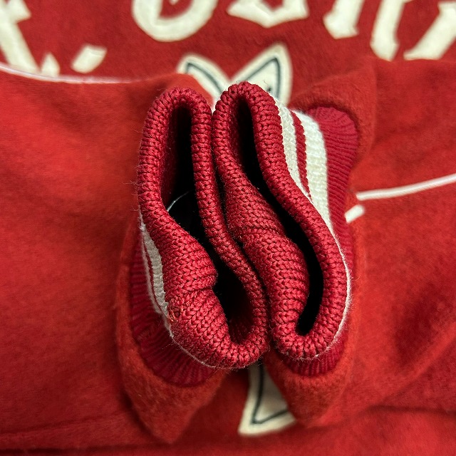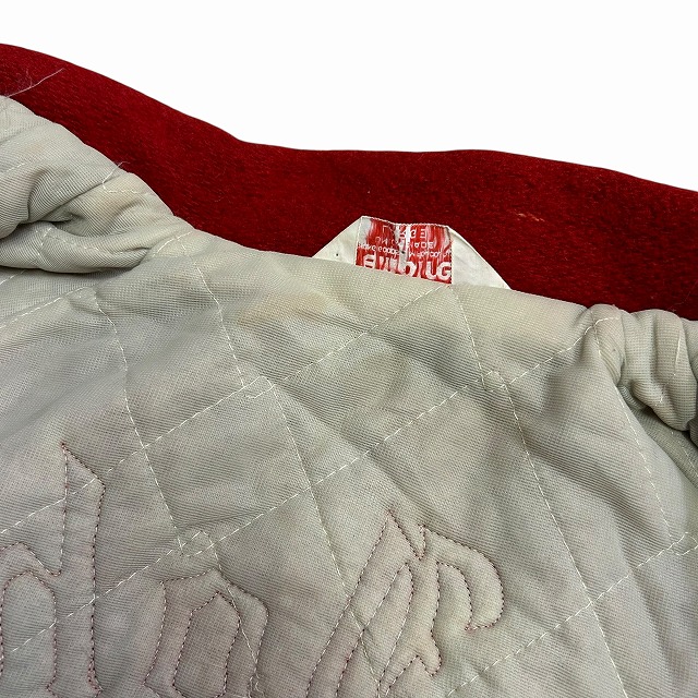 - 画像のように、ワッペンや首元、白リブに汚れが見られます。