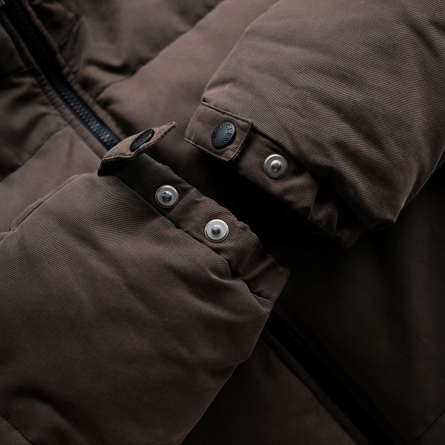 こちら流通の少ない珍しい個体となっており、生地を通常のナイロンではなくブラウンのコットンツイルを使用しております。見た目に反して非常に軽く、ナイロンタイプの着心地と違いはないです。またナイロンの弱点である耐久性も克服しており、エイジングで綺麗なときとまた違った良さが出てきそうです。