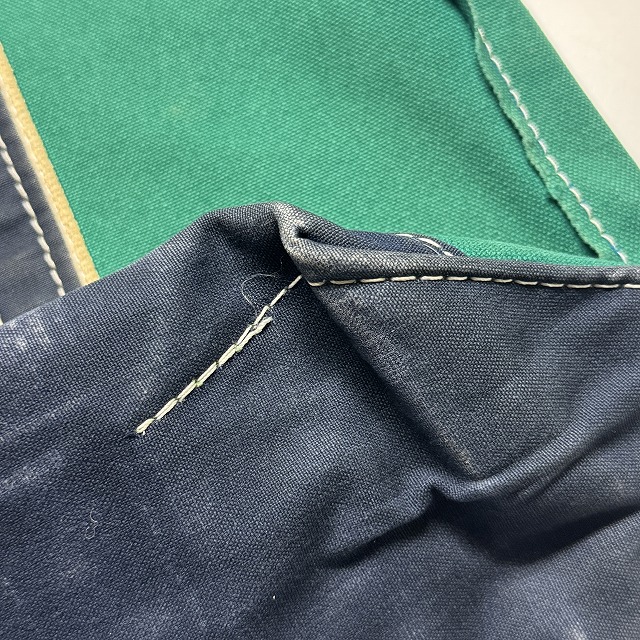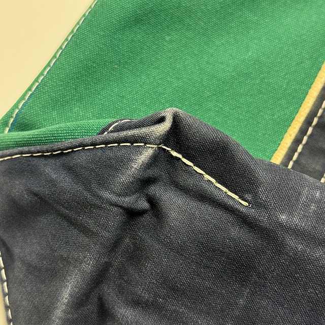 - キャンバス地にスレ、底面にアタリ、持ち手に変色等見られますが、目立った大きなダメージ等は無く、ユーズド慣れされた方でしたら、まだまだご愛用していただけます。