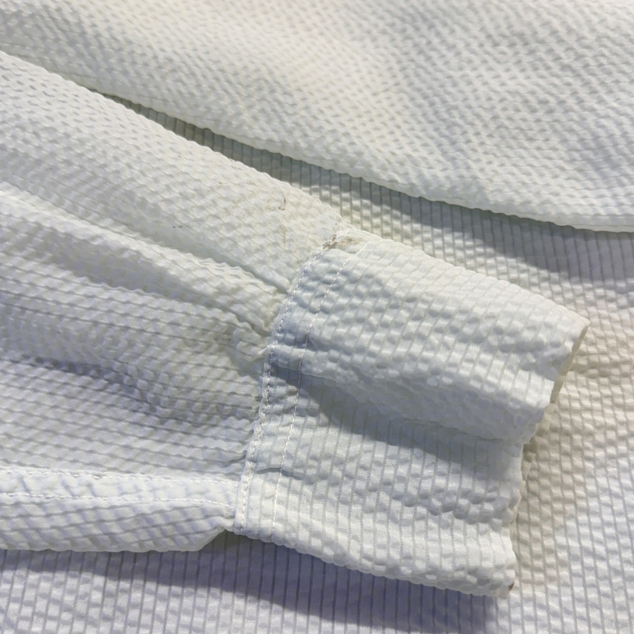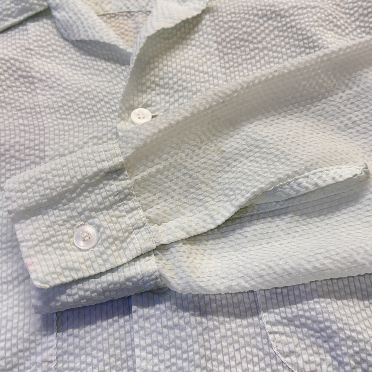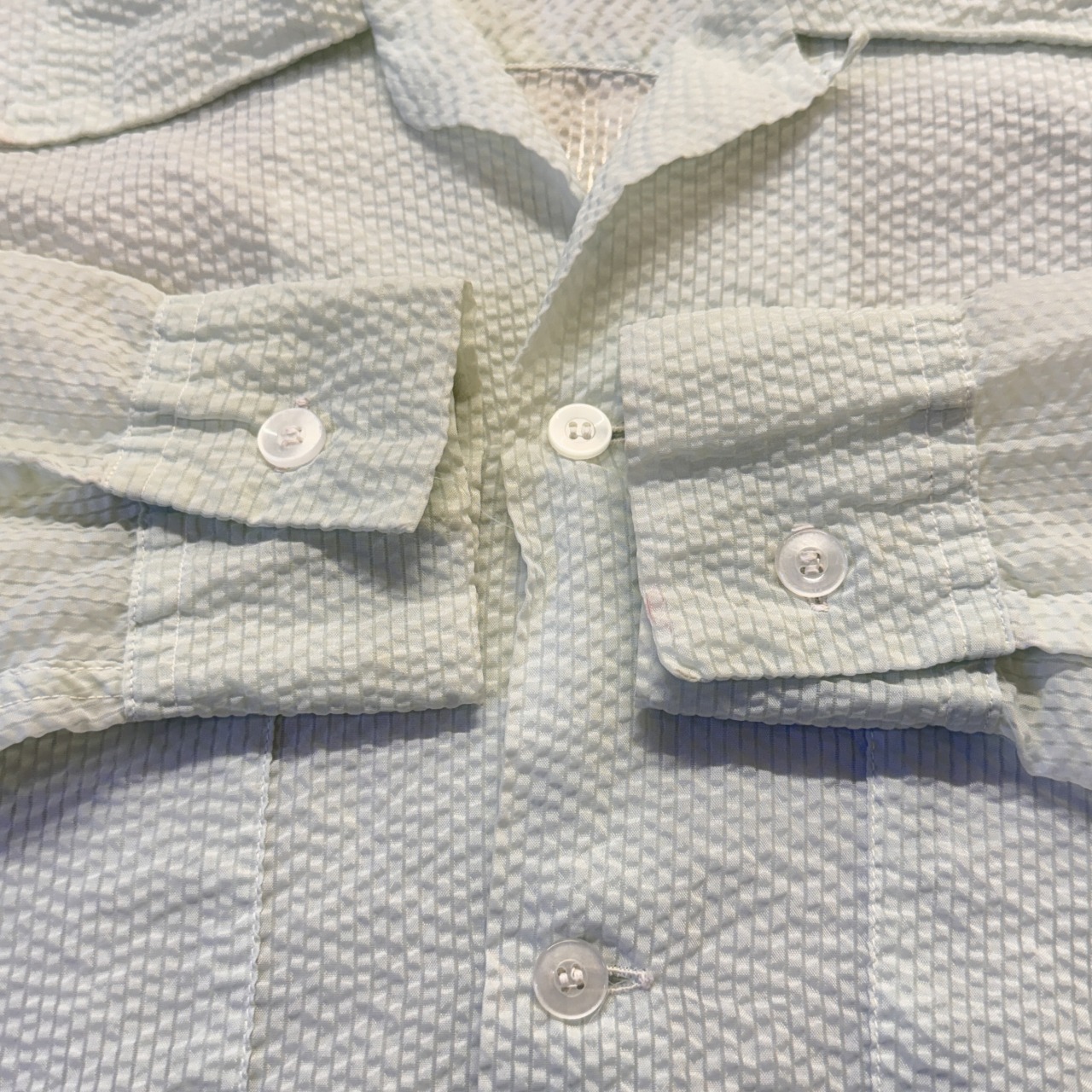 シアサッカー生地の透けてるシャツ。