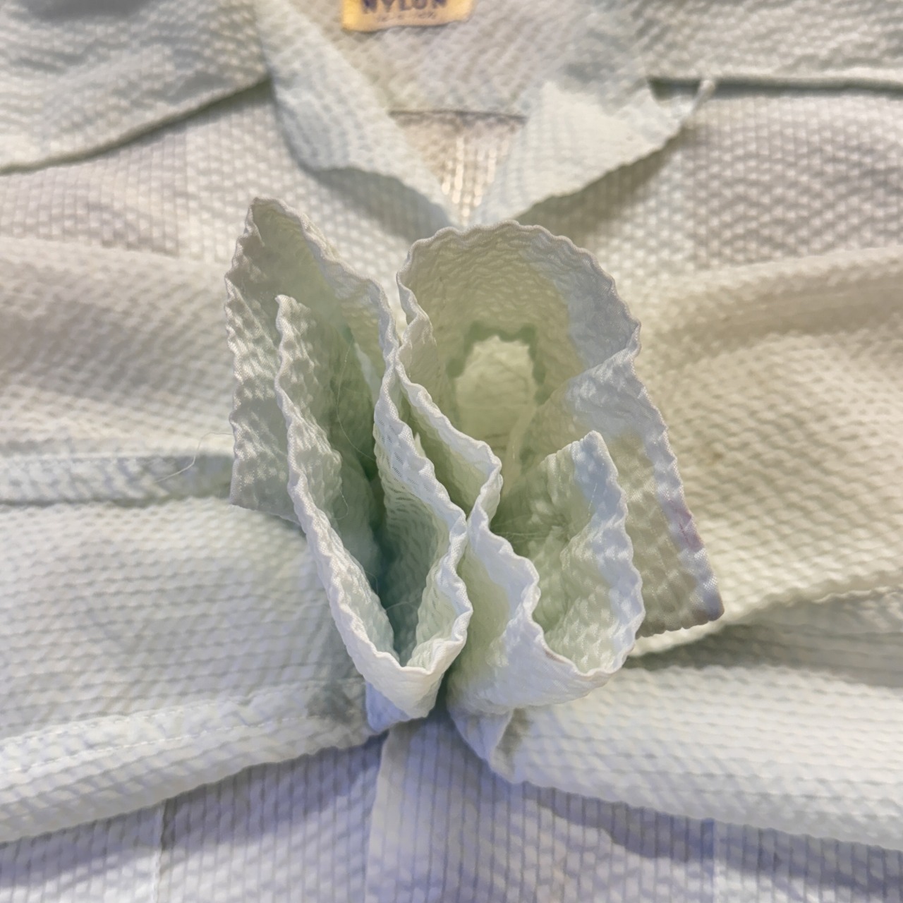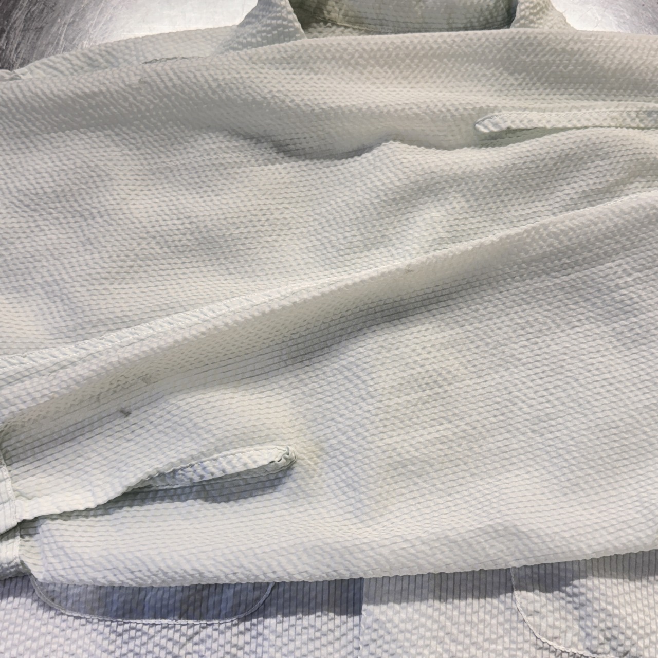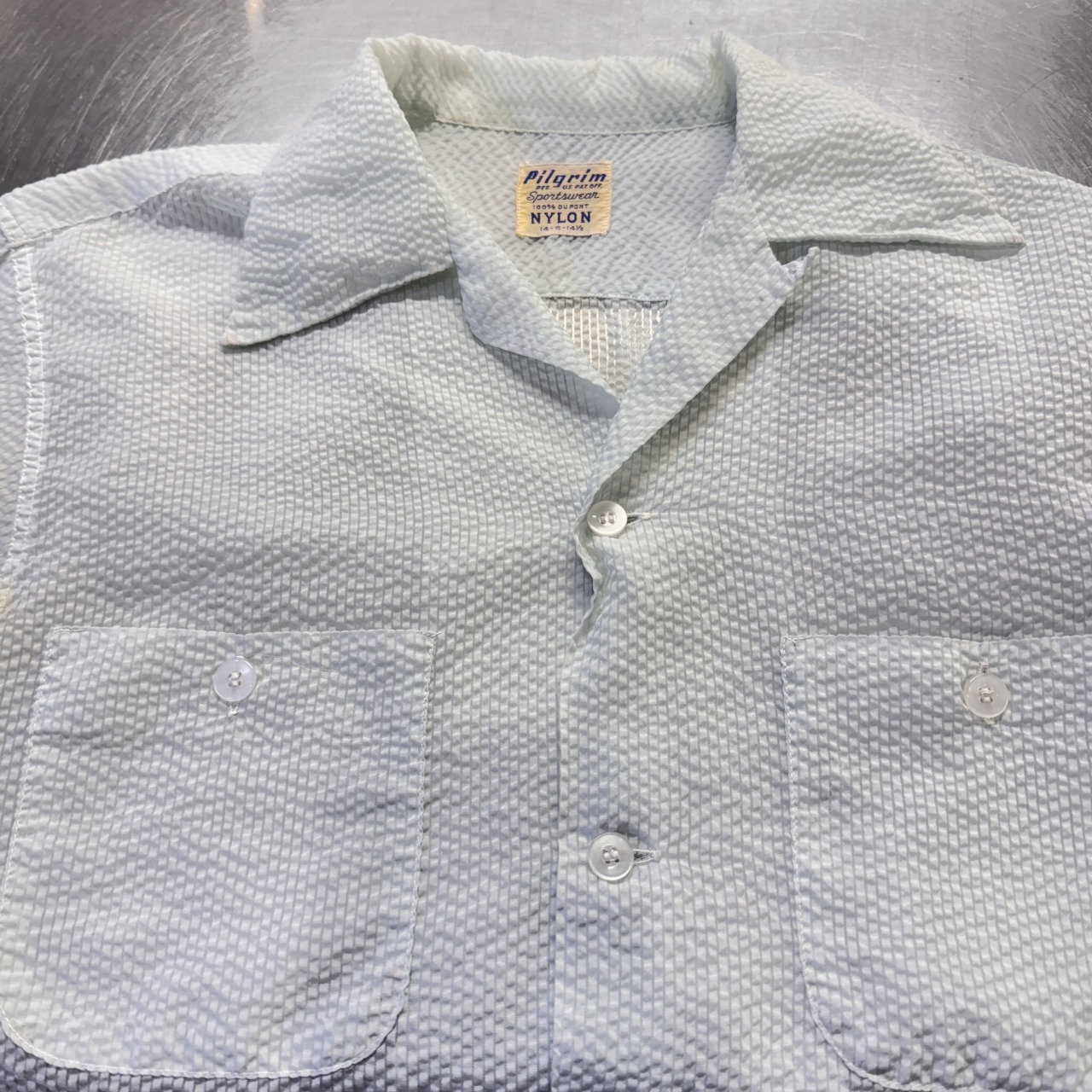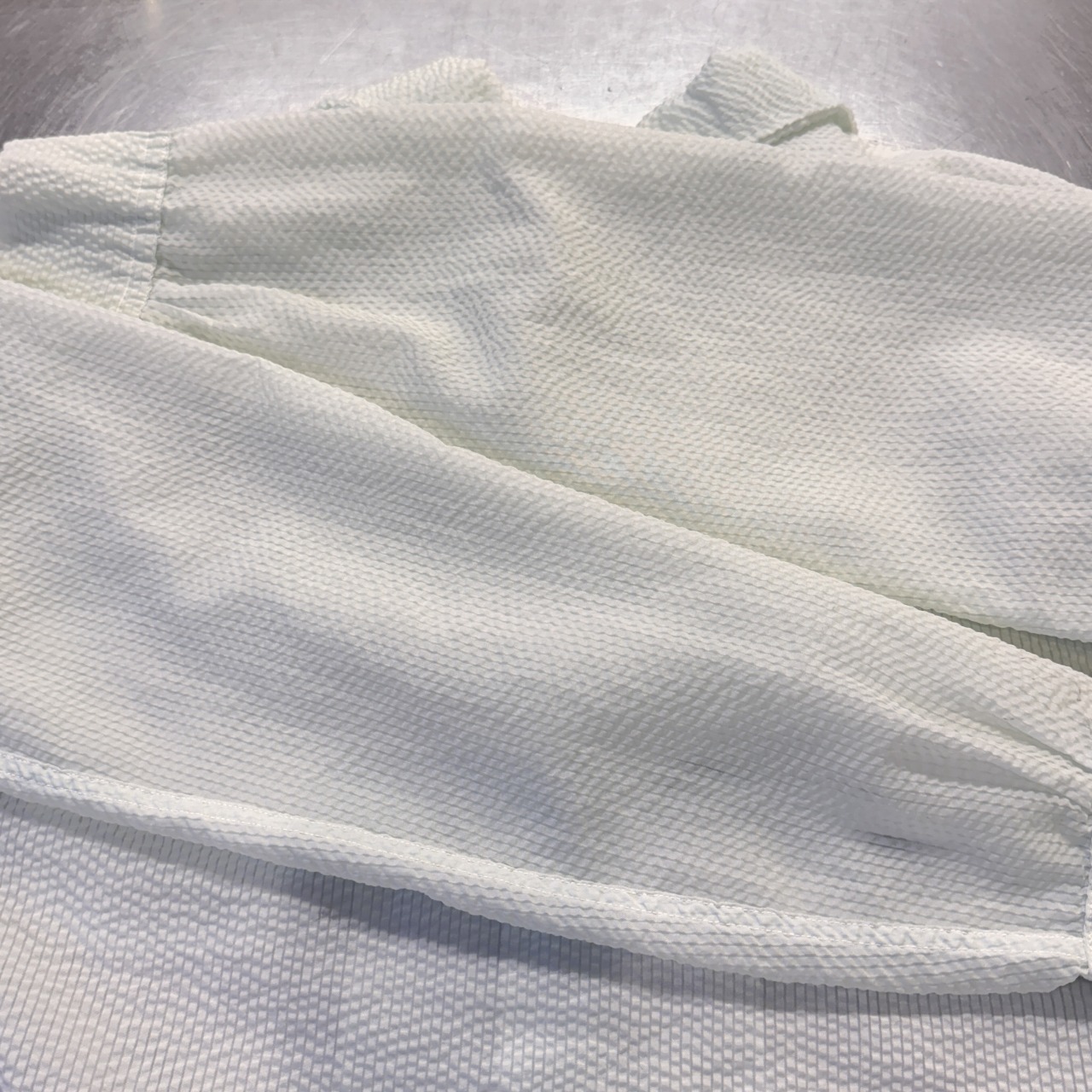 シアサッカー生地の透けてるシャツ。