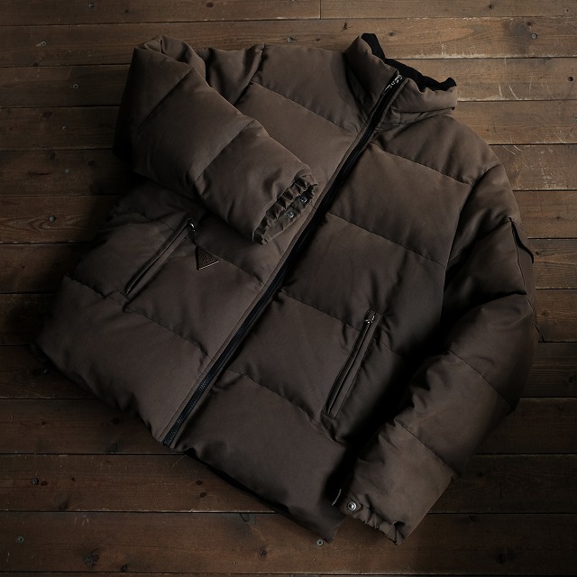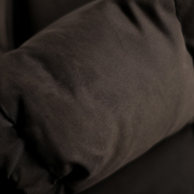 こちら流通の少ない珍しい個体となっており、生地を通常のナイロンではなくブラウンのコットンツイルを使用しております。見た目に反して非常に軽く、ナイロンタイプの着心地と違いはないです。またナイロンの弱点である耐久性も克服しており、エイジングで綺麗なときとまた違った良さが出てきそうです。