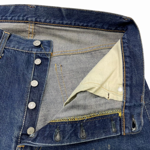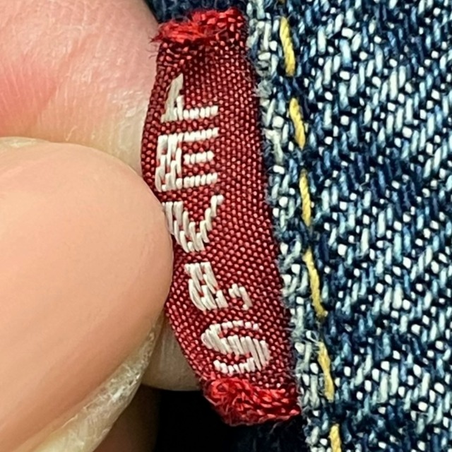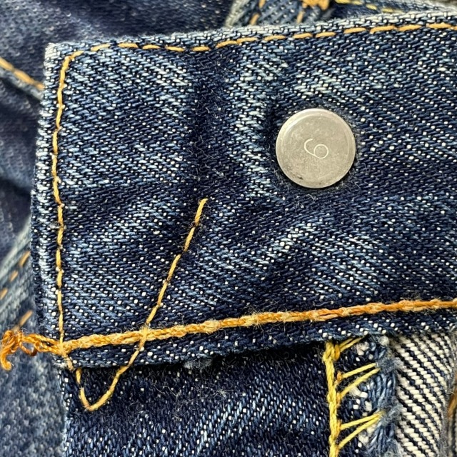 - トップボタン裏刻印『9』、Vステッチ、ウェストシングル、足長R、不均V
