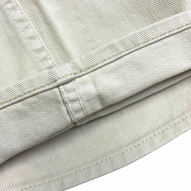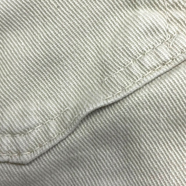 - 画像のように、股にリステッチがあり、左ヒップポケットにステッチ抜けがございます。