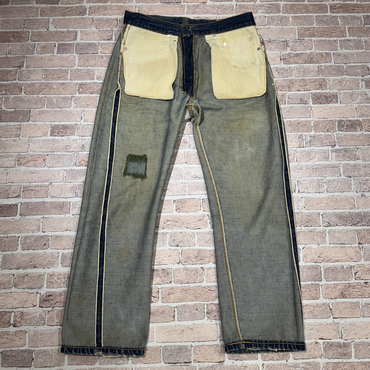画像の様に、リペアやスレ、脱色、あたり等の着用感がございますが問題なく着用可能な状態です。