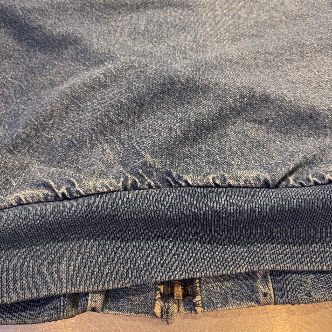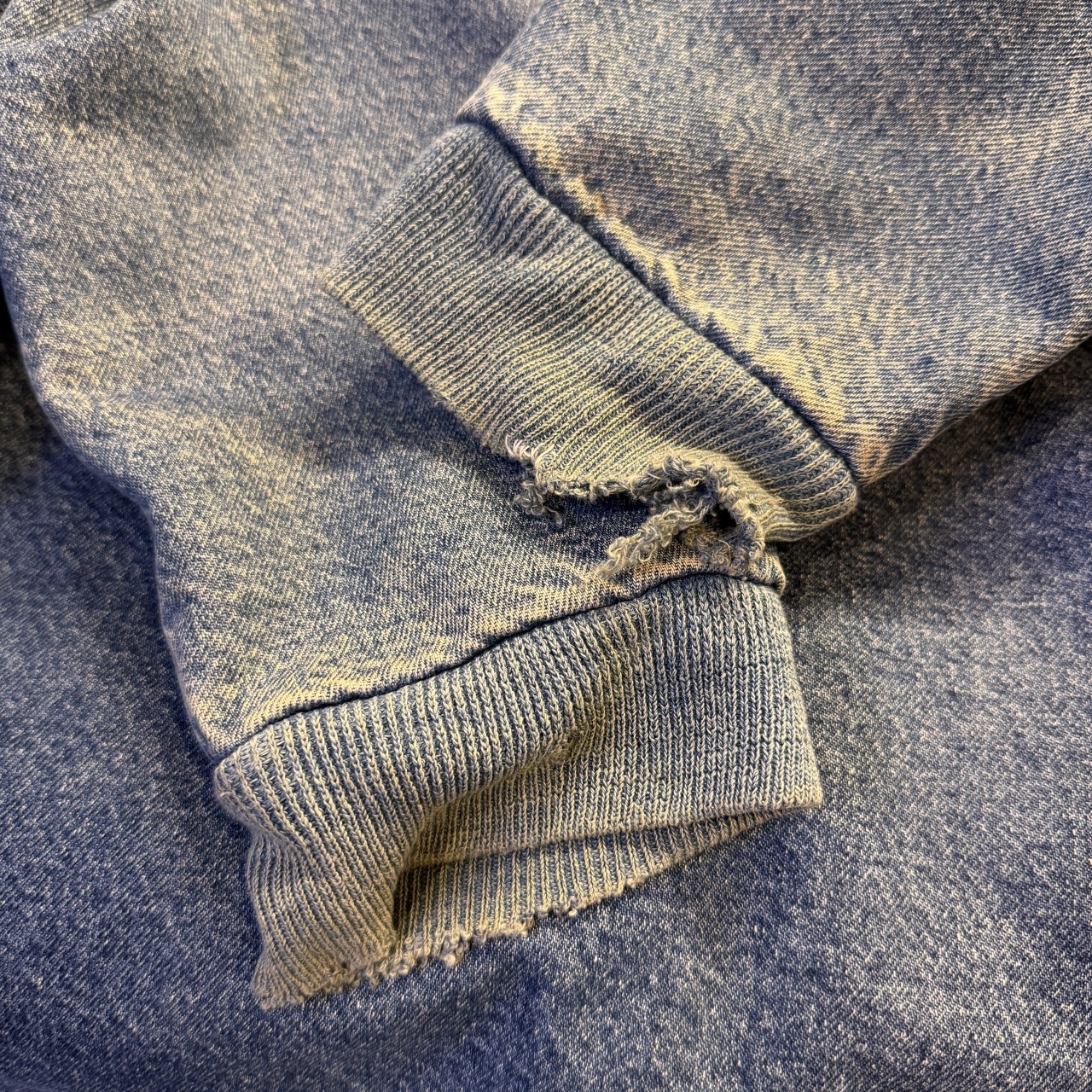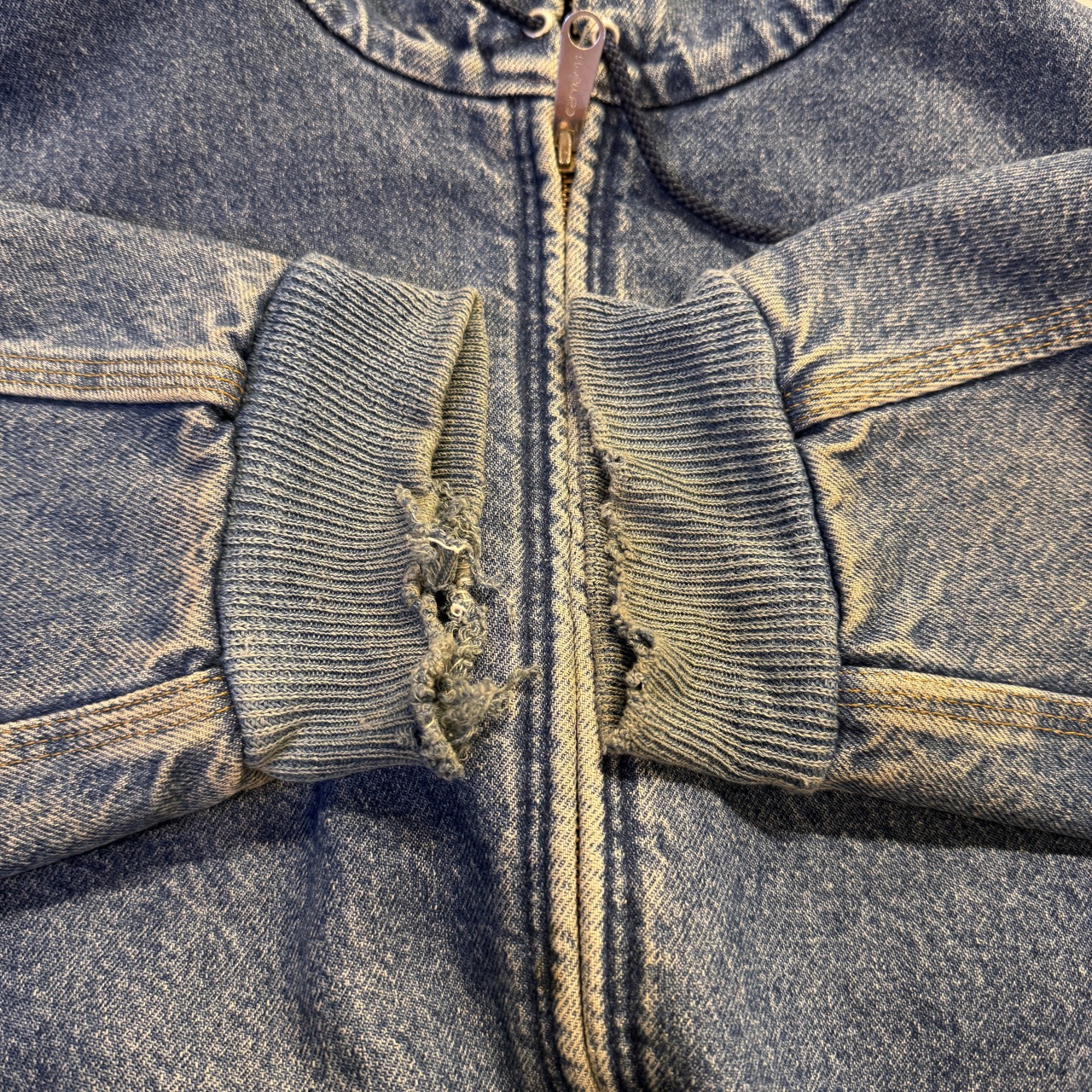 - 袖先ダメージ、袖リブの広がり、フロントにシミ、内部毛玉等の着用感がございますが、問題なく着用可能な状態です。