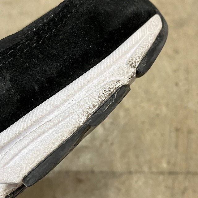 - アウトソール、ミッドソールに多少の薄汚れがみられます。また、インソールに多少の毛の付着、毛玉がみられます。その他、スレ等の着用感ございますが、ユーズド慣れされた方でしたら、まだまだ着用していただけます。