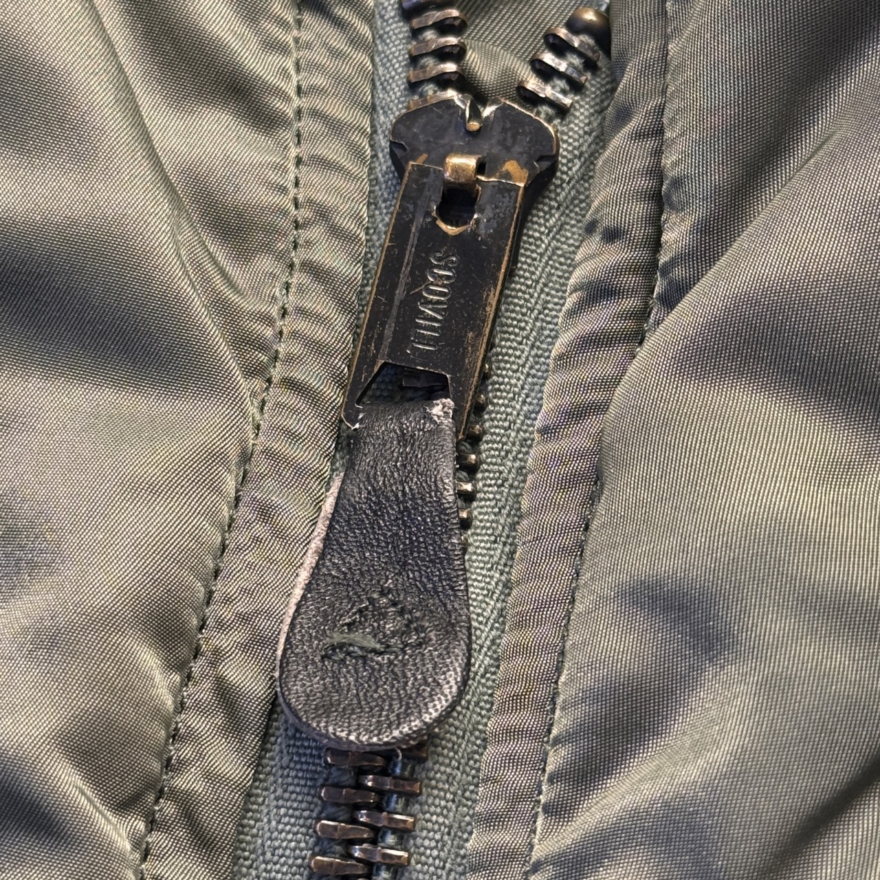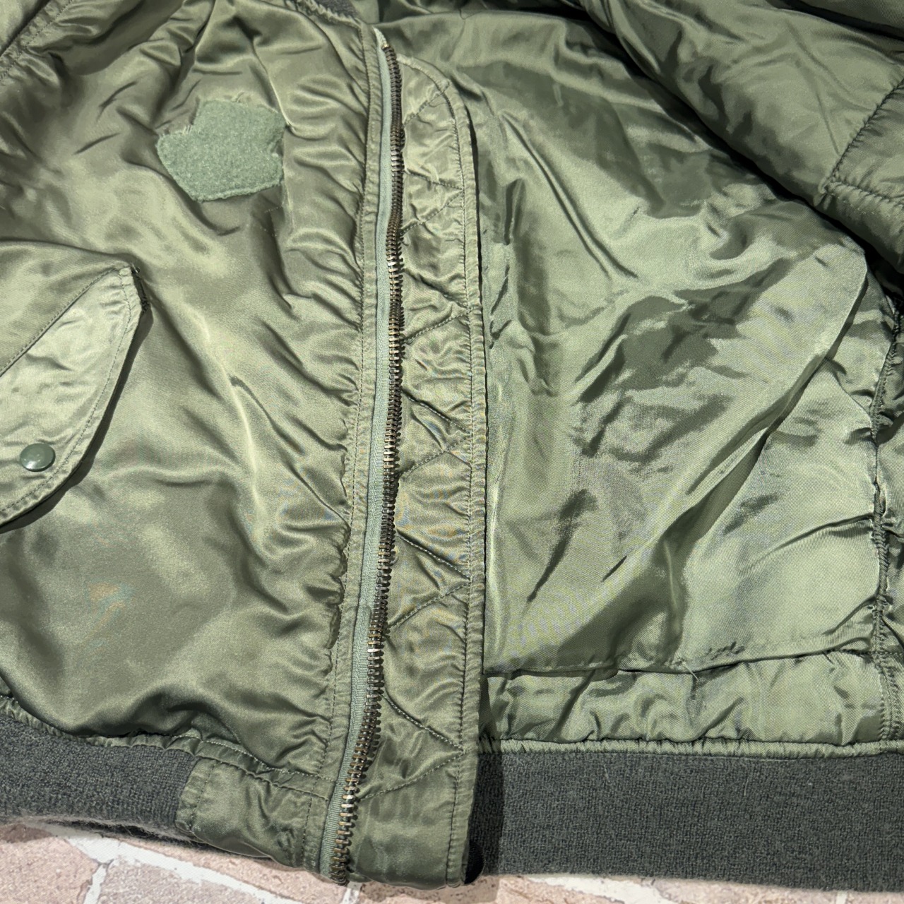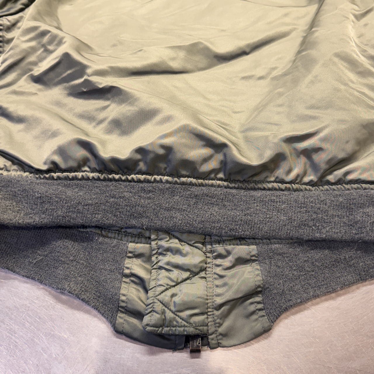 フライトジャケットといえば戦闘機搭乗員専用ですが、こちらは「グランドクルー」の文字通り地上作業を行う際に着用するモデル。表の生地と同じ色のキルティングライナーがこのモデルの最大の特徴になります!