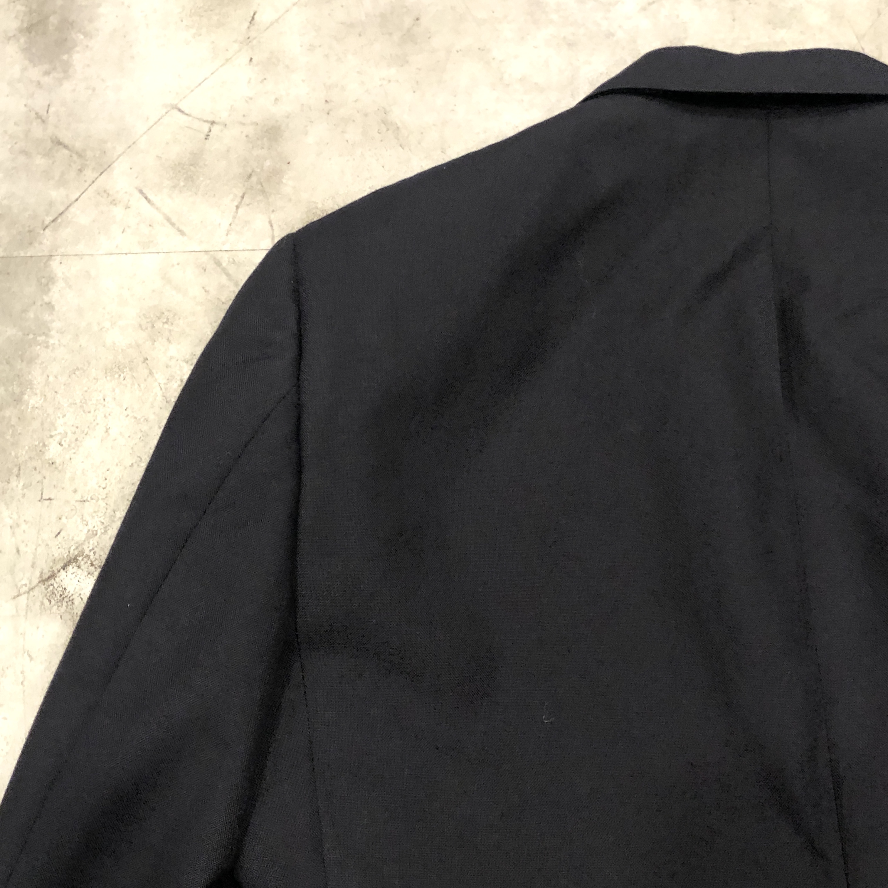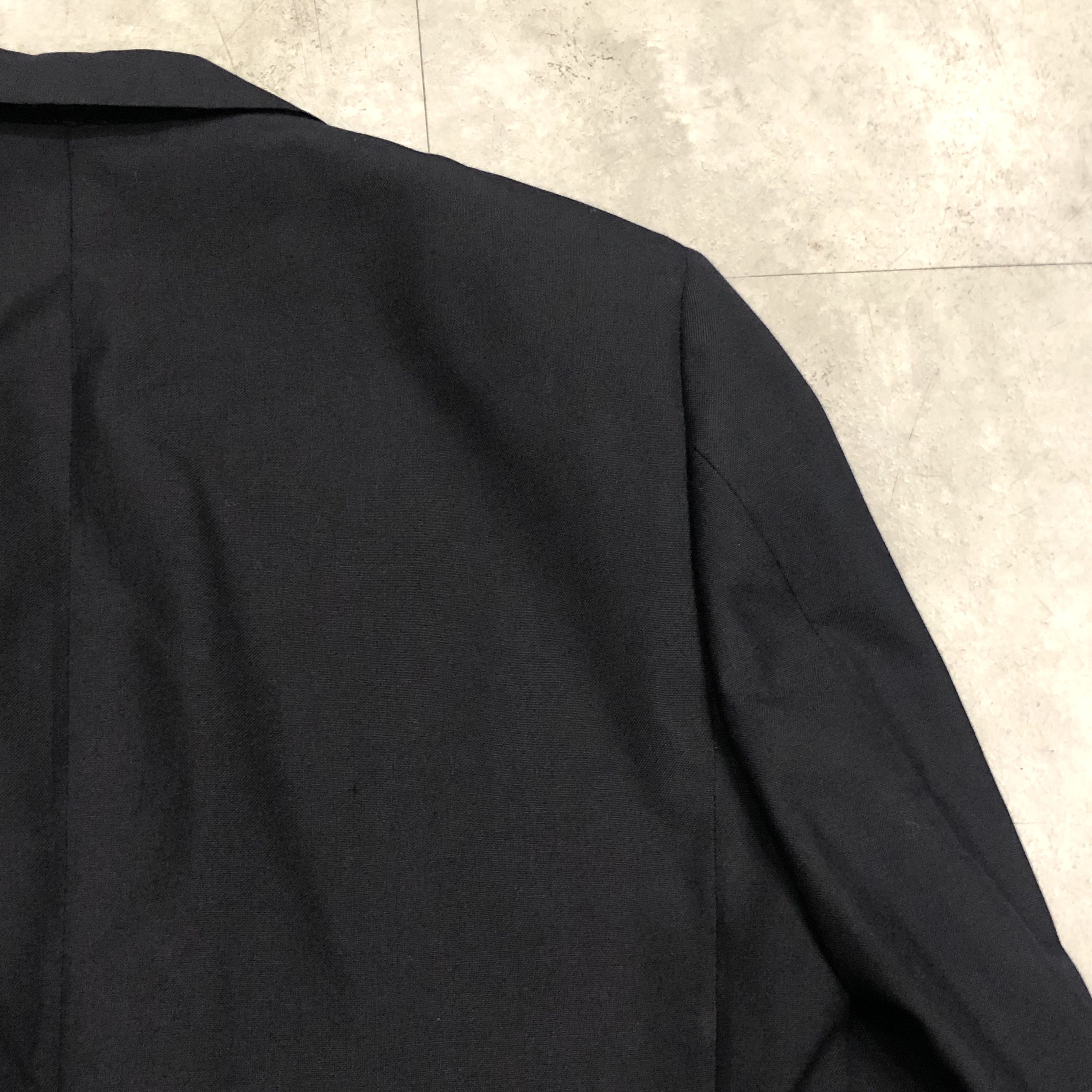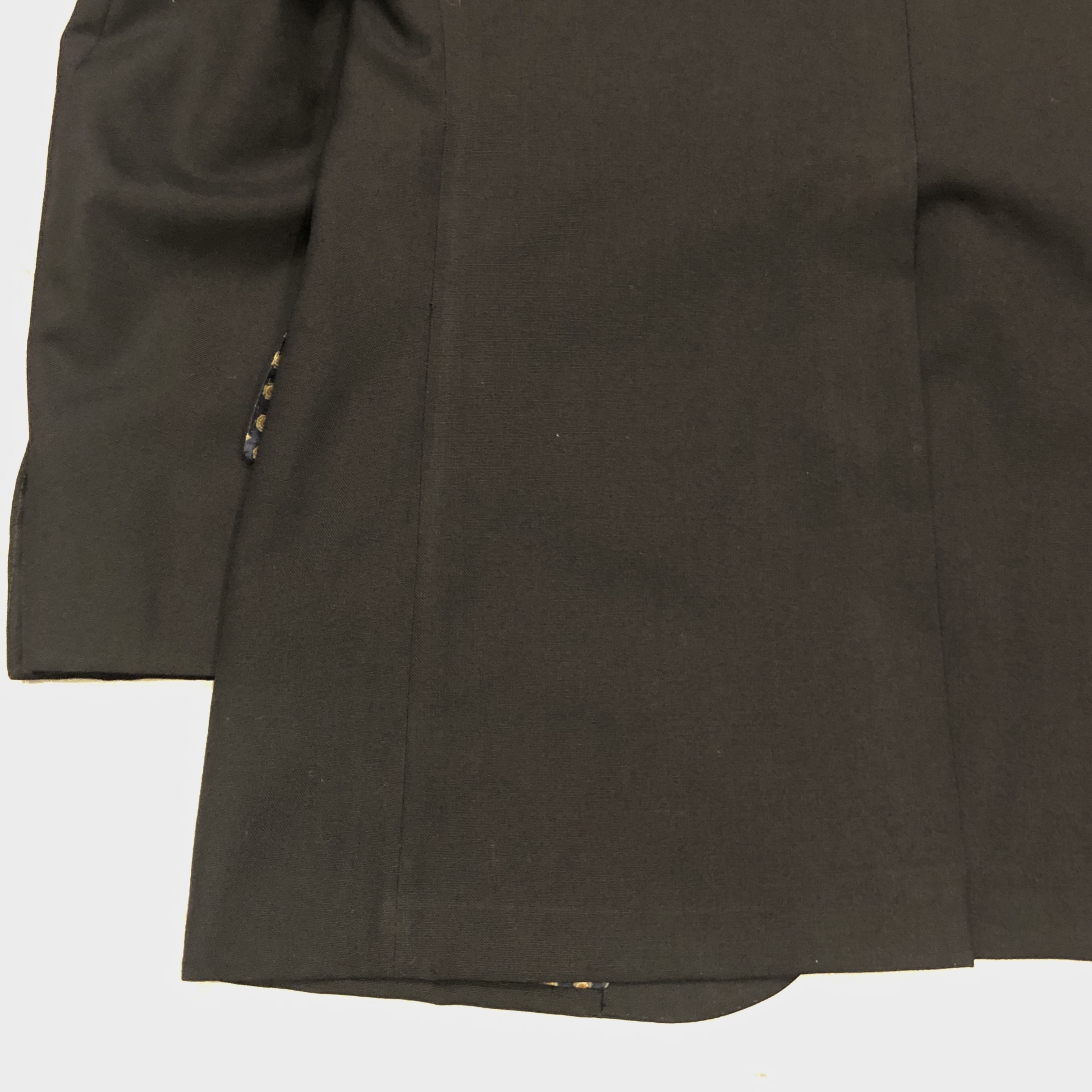 生地は英国製ピュア・ニューウール(PURE NEW WOOL)を使用。しなやかで張りのあるウール地が、構築的なショルダーラインと美しいドレープを描きます。クラシックな2ボタンのフロント、わずかにワイド気味のラペル、そしてウエストの自然なシェイプ。すべてが英国テーラリングの王道を体現しています。