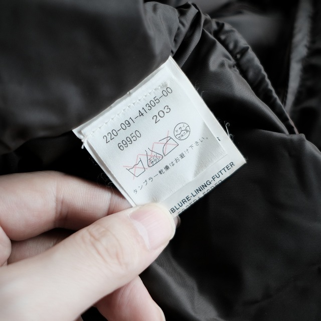 - 全体的に非常に良好なコンディションですが、画像のように袖先ゴム部に小さなピンホールがございます。ダウン部分には影響のない箇所ですので問題なく着用可能です。
