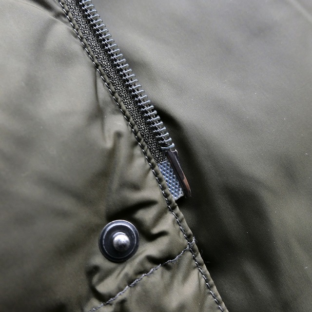 ディテールは特徴的で、お尻が丁度隠れるくらいの長さの着丈で、フラップ付きポケットが2つ。フロントはジップとスナップボタンどちらでも閉められる仕様。